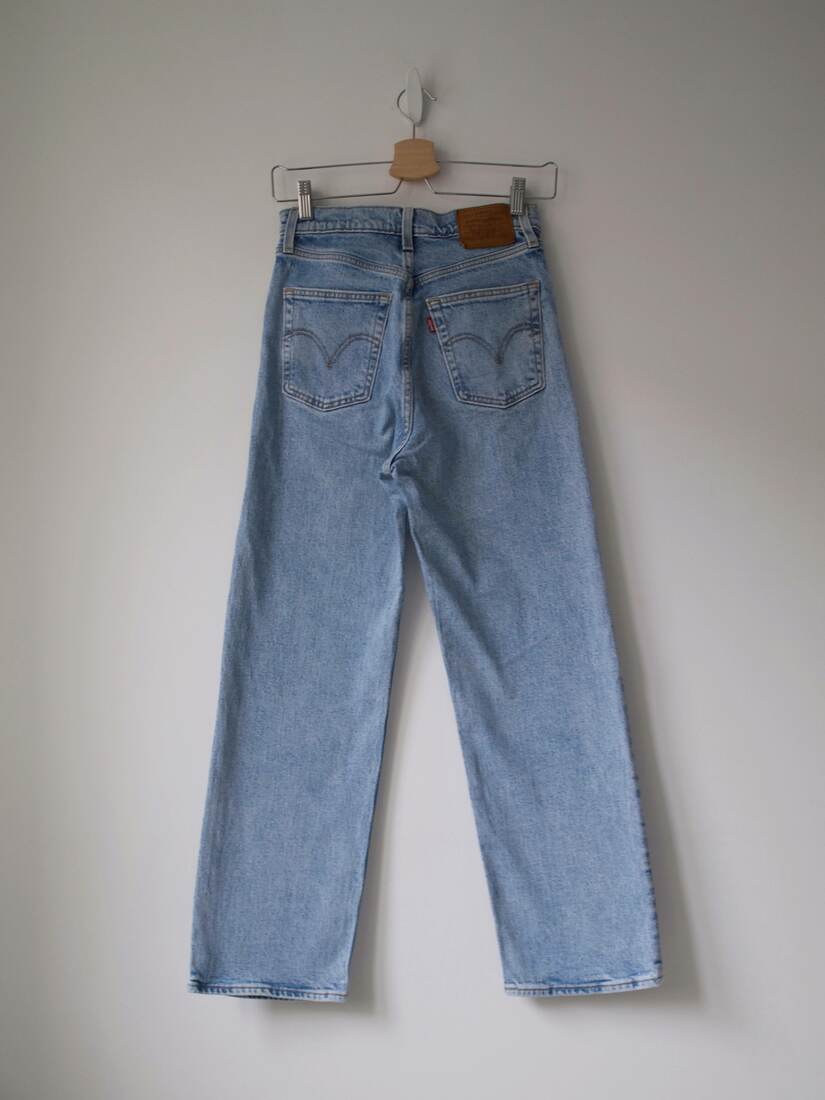 Jeansy marki Levi’s, model Ribcage. Na nogawce mała plamka, mało widoczna (ost. zdjęcie)