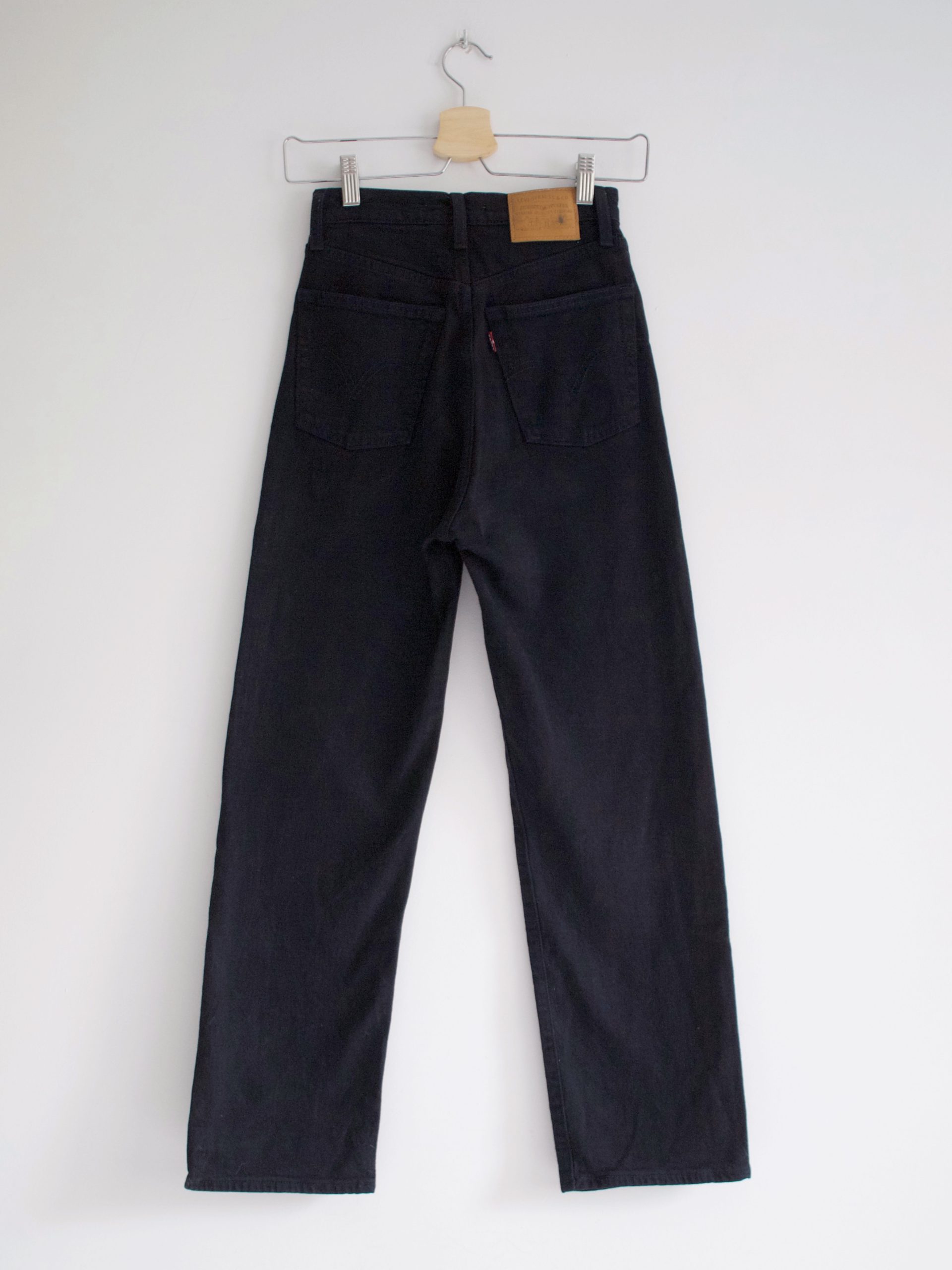 Jeansy Levi’s z wysokim stanem i prostymi, szerokimi nogawkami. Zapinane na guziki. Rozmiar z metki W24 L27, nie są elastyczne. Bez wad.