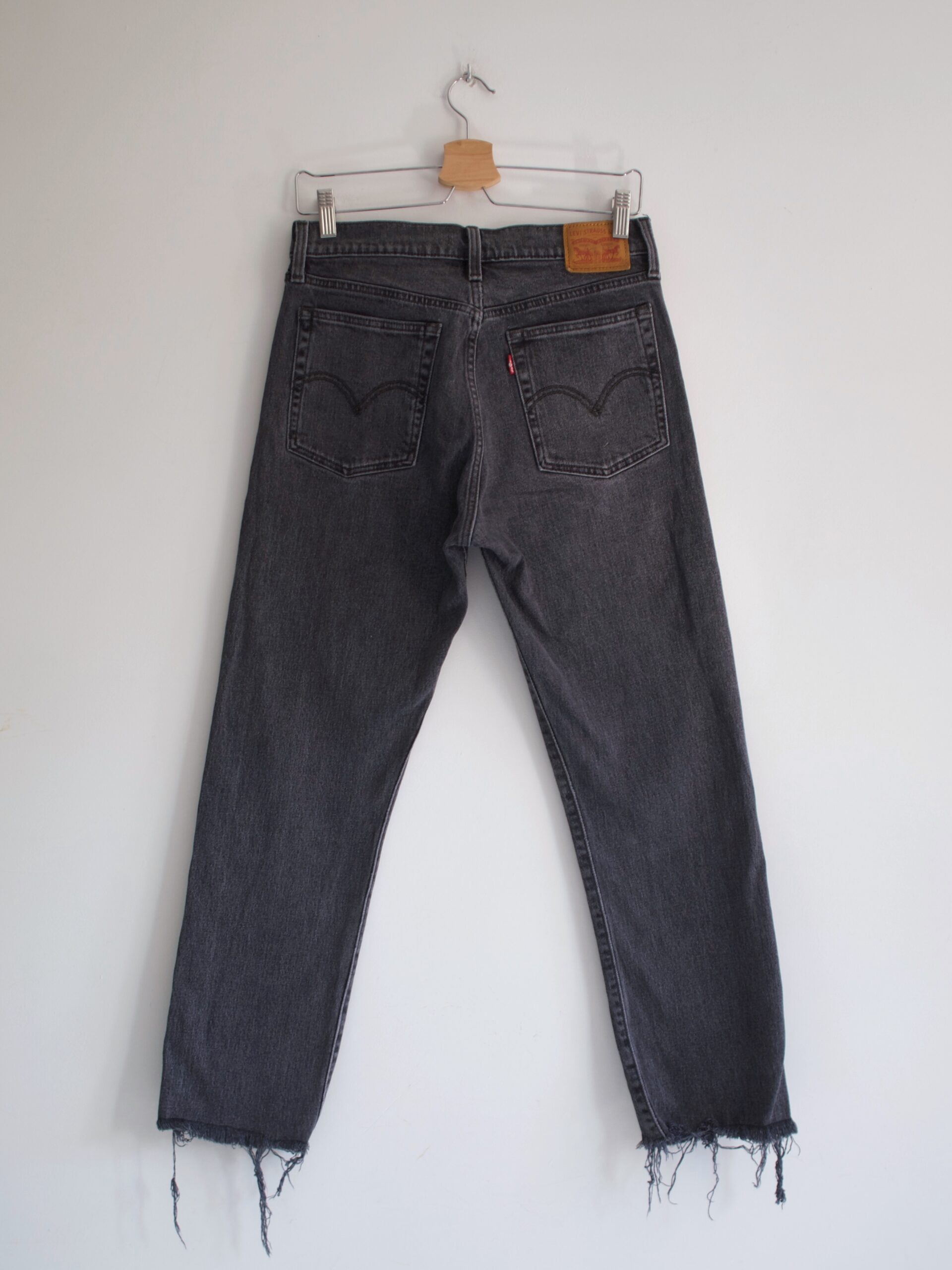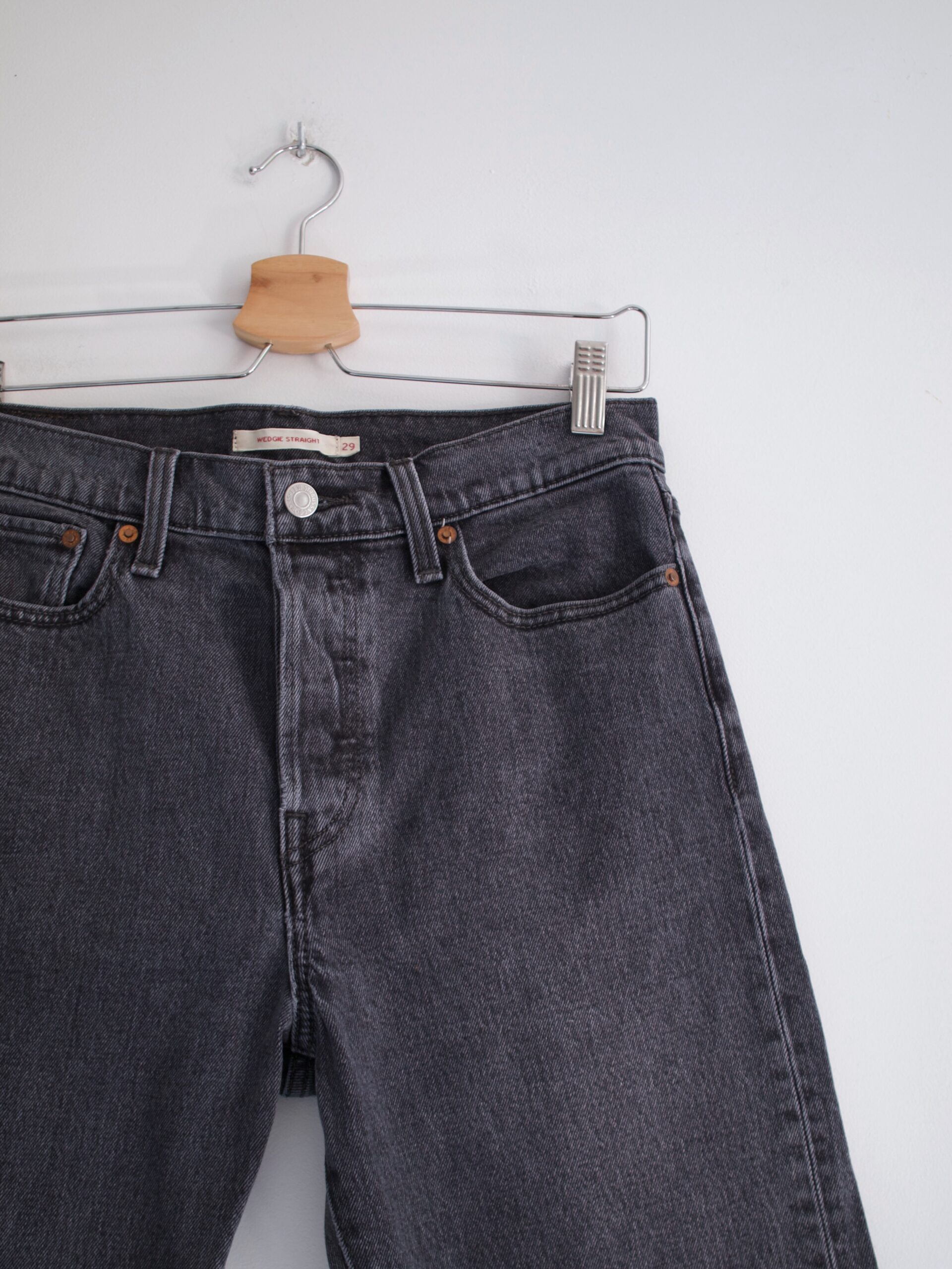 Jeansy marki Levi’s, model Wedgie Straight. Zapinane na metalowe guziki.