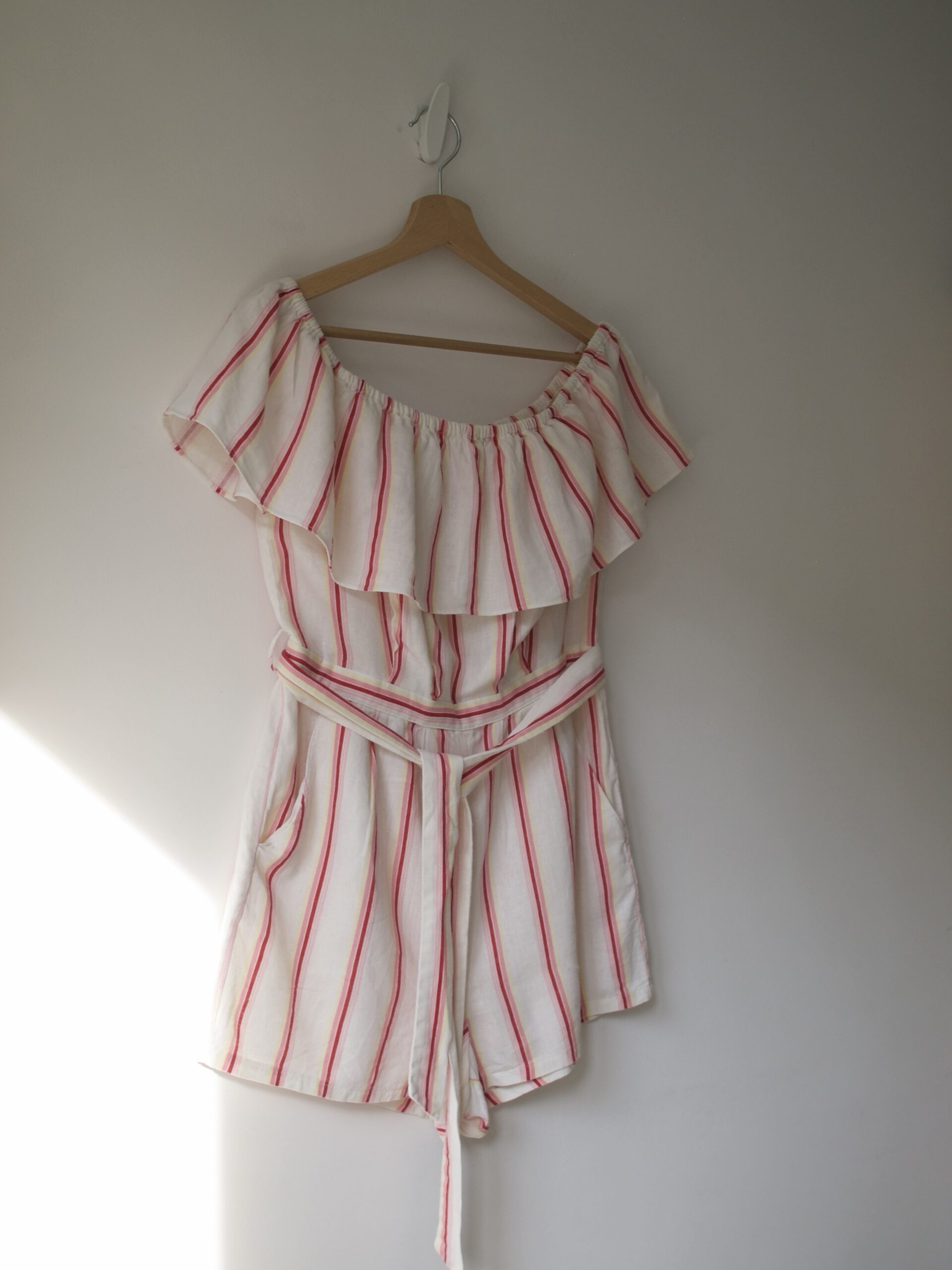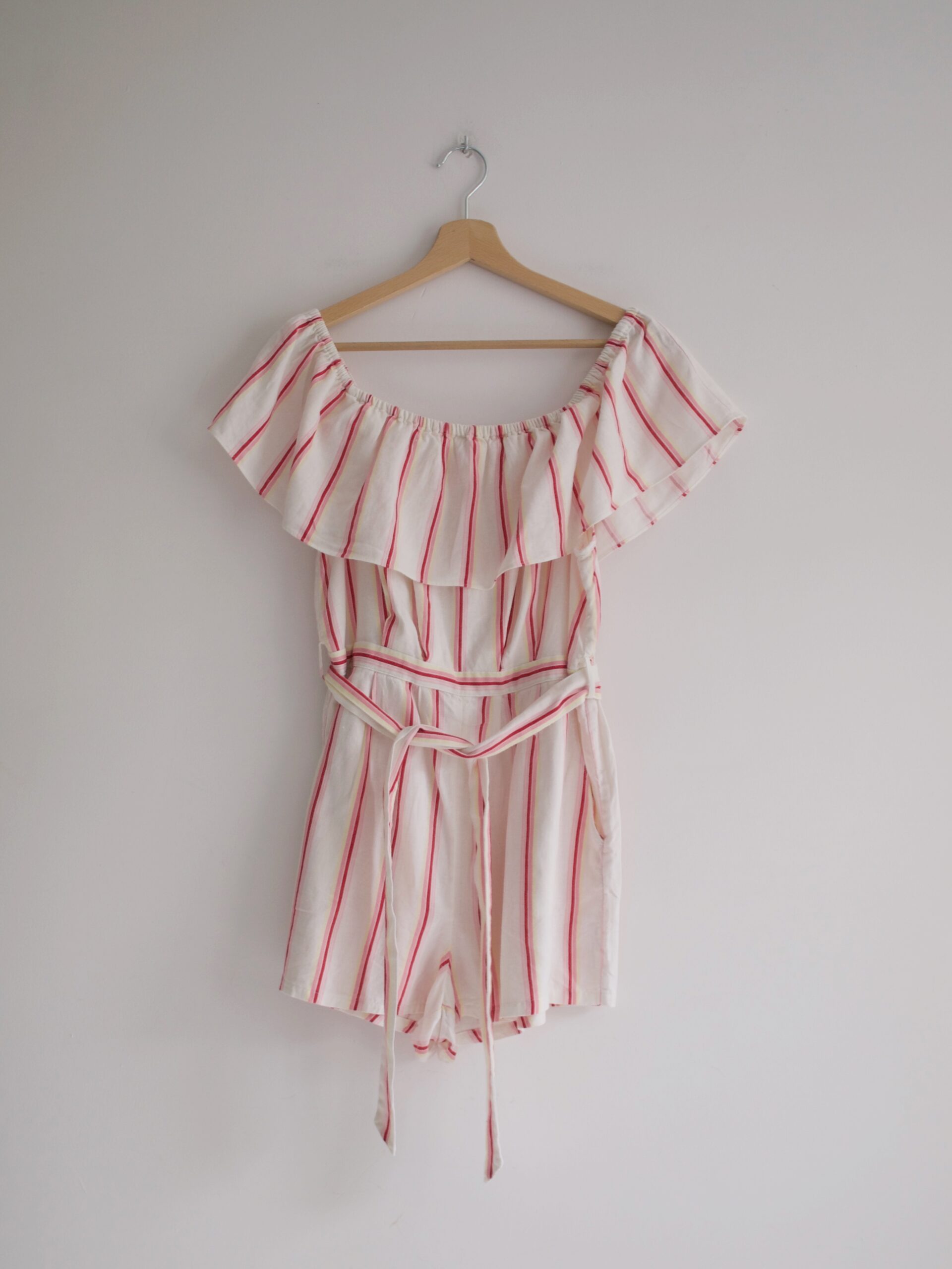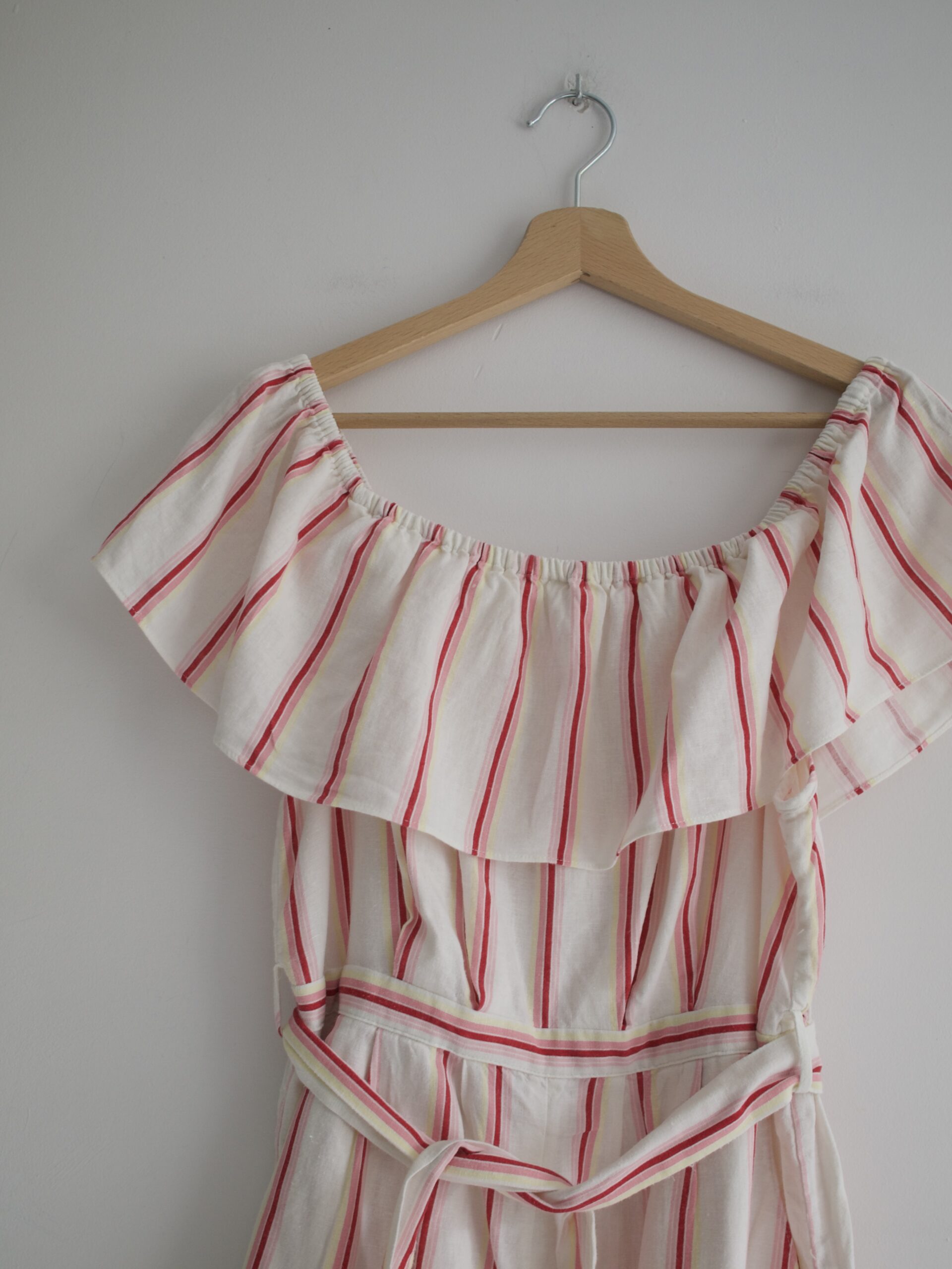 Rozmiar: 12 Skład: 55% len, 45% wiskoza Stan: bez wad Szerokość w klatce 46 cm Szerokość w pasie 35 cm Szerokość w biodrach 50 cm Długośćcałkowita 59 cm