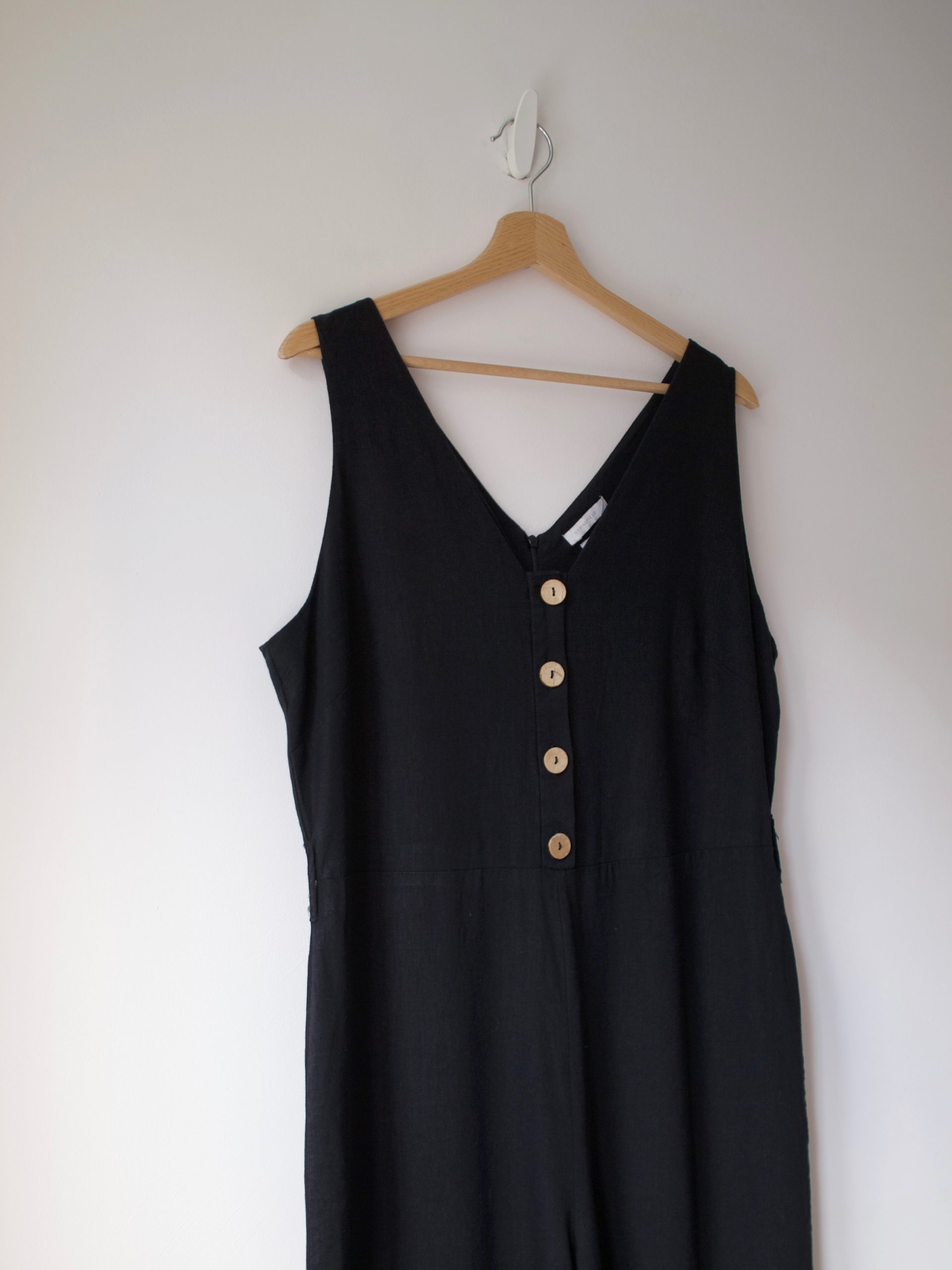 Kombinezon z szerokimi nogawkami, wykonany z mieszanki lnu oraz wiskozy. Posiada szlufki na pasek.