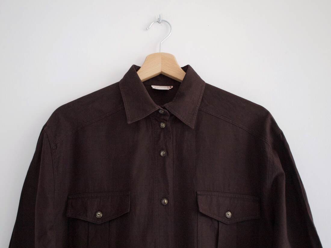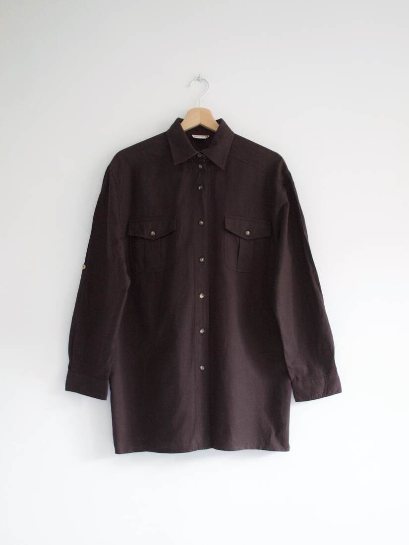 Koszula vintage w czekoladowym kolorze. Rozmiar z metki M, fason jest bardzo luźny, więc będzie pasować również na L, dla mniejszych rozmiarów idealna jako oversize. Bez wad.