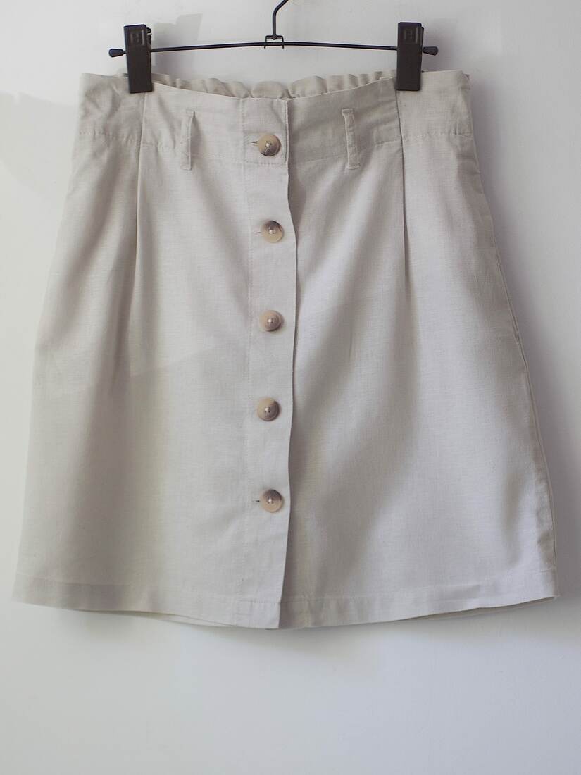 Minimalistyczna rozpinana spódniczka. Materiał 55% len, 45% bawełna, bez podszewki. Rozmiar z metki 36, idealny stan.