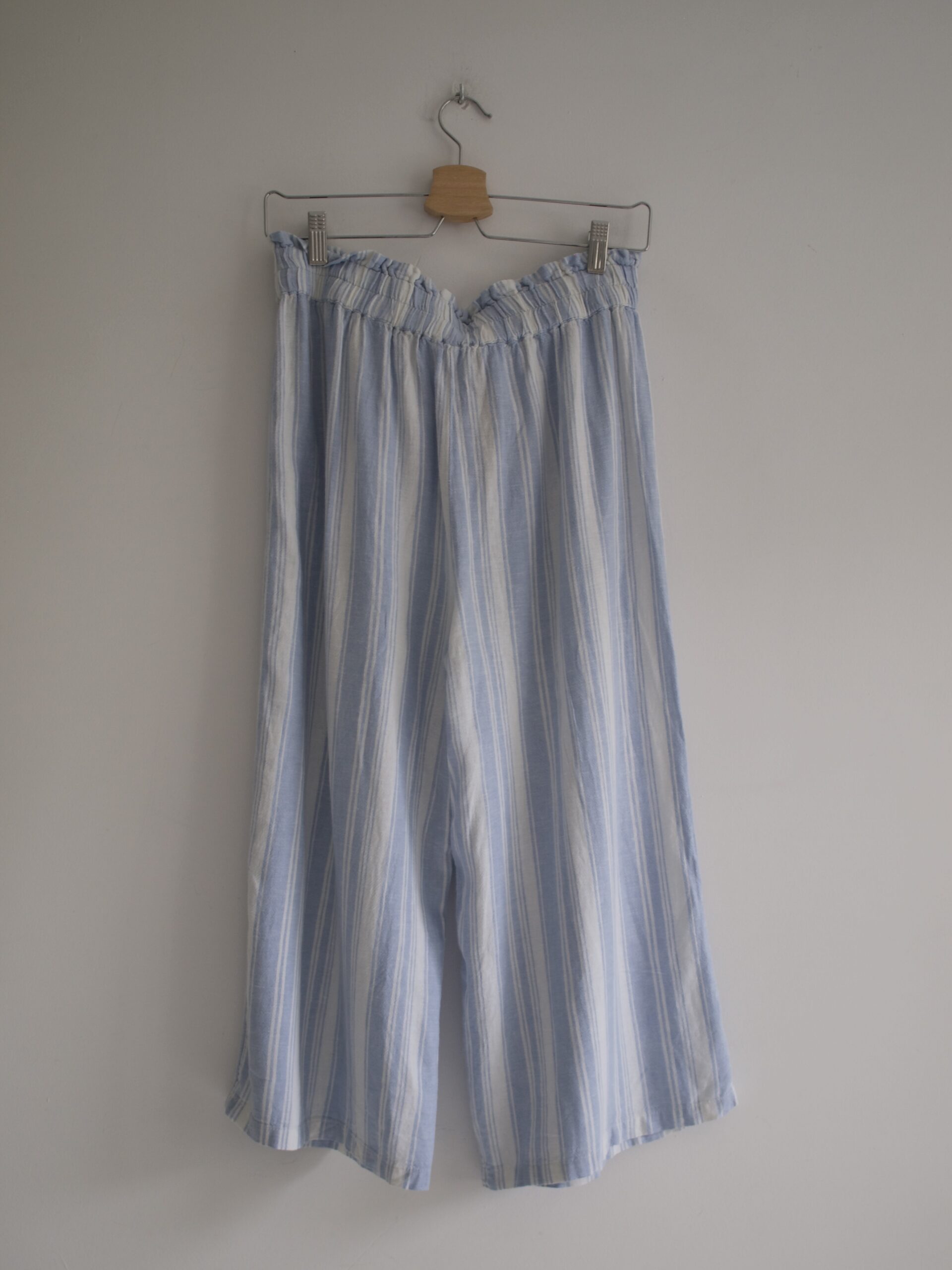 Spodnie vintage wykonane z materiału z dużym udziałem wełny. Nie były noszone, posiadają metkę materiałową (na zdjęciach). Zawężane w talii, w pasie mała gumka, nogawki zawężane ku dołu, kieszenie. Rozmiar wypada n S-M, wymiary poniżej.