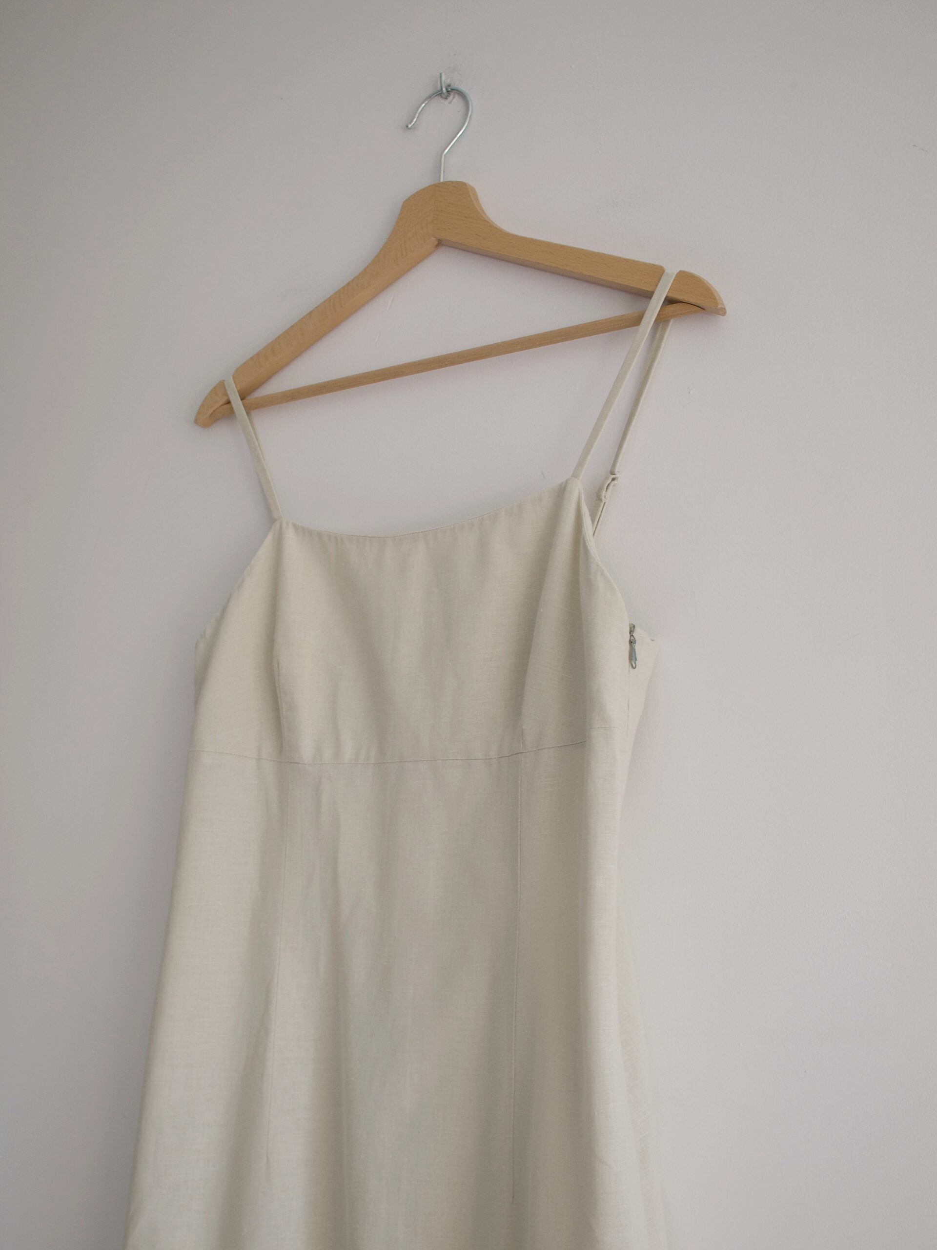Rozmiar: 38 Skład: 60% len, 40% bawełna Stan: bez wad Szerokość w klatce 41 cm Długośćcałkowita centralnie 88 cm
