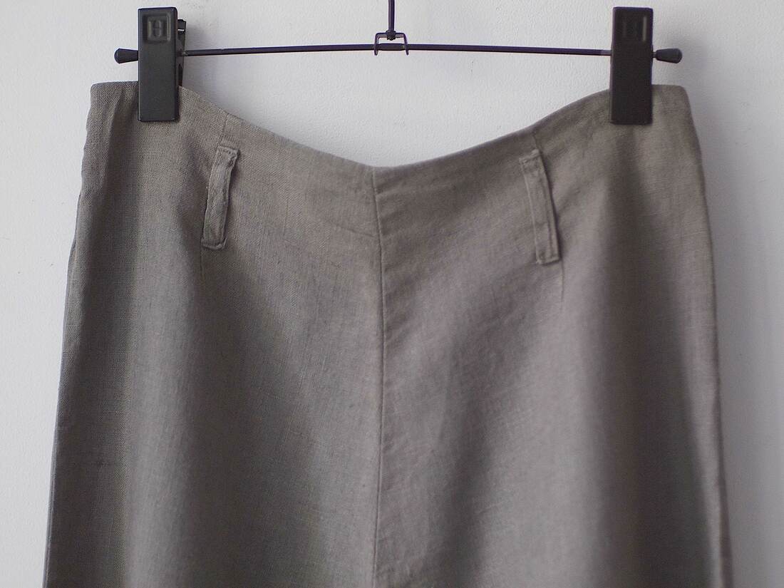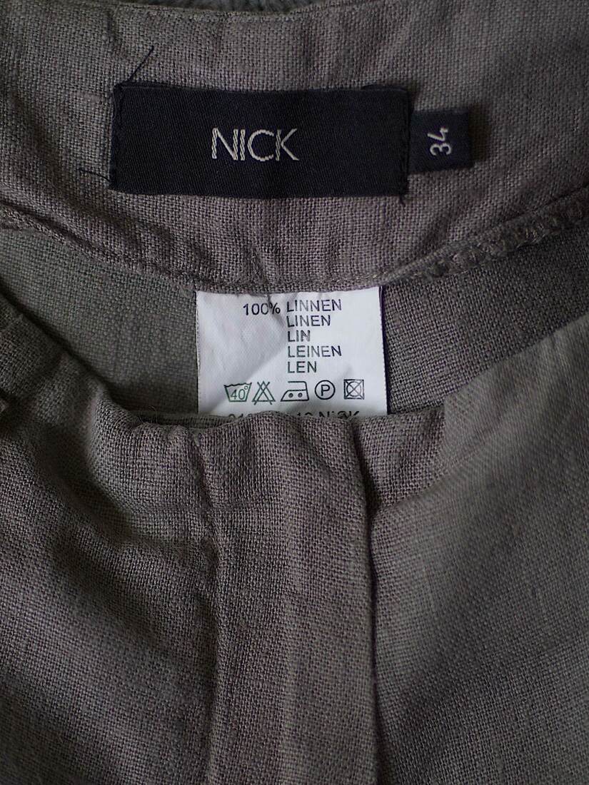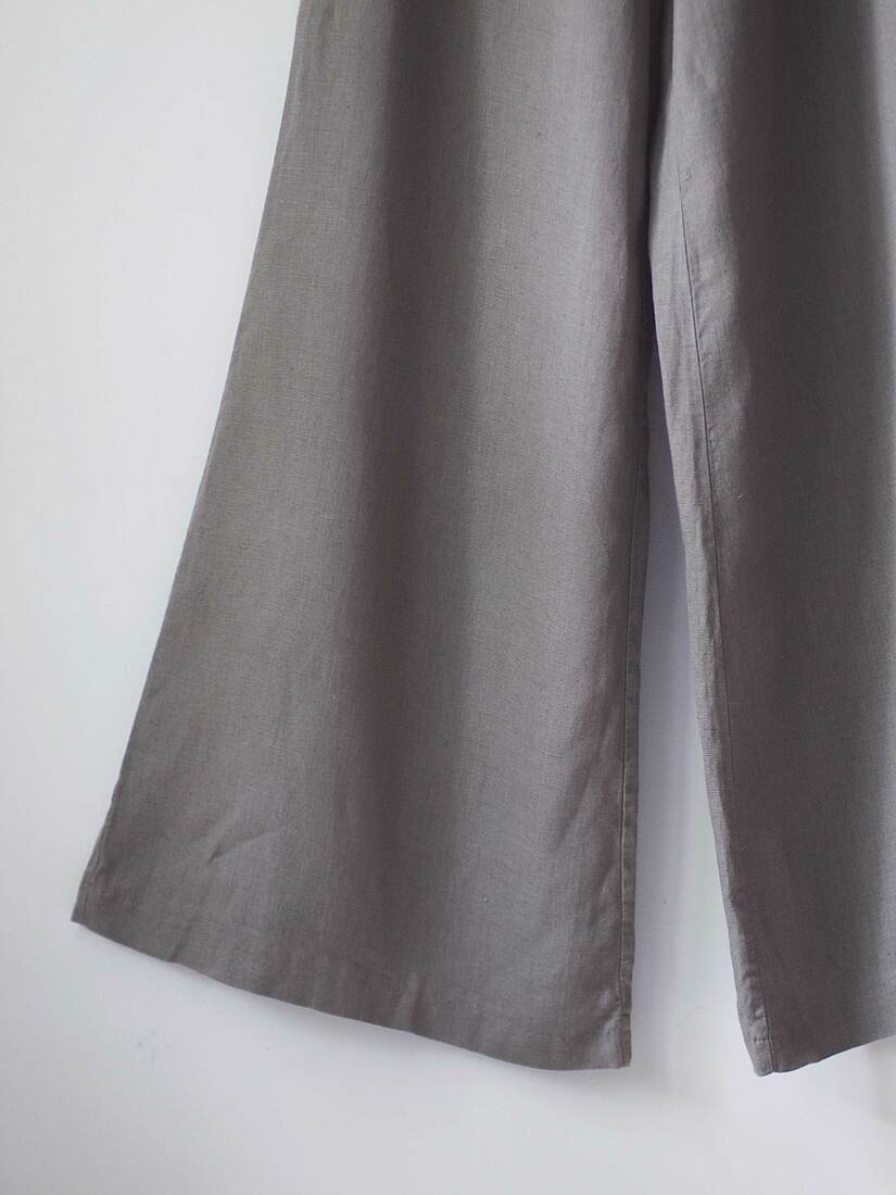 Szare lniane spodnie z bardzo szerokimi nogawkami. Wysoki stan, szlufki na pasek, zapinane na ukryty zamek. Rozmiar z metki 34, bez wad.
