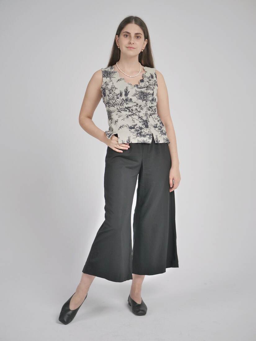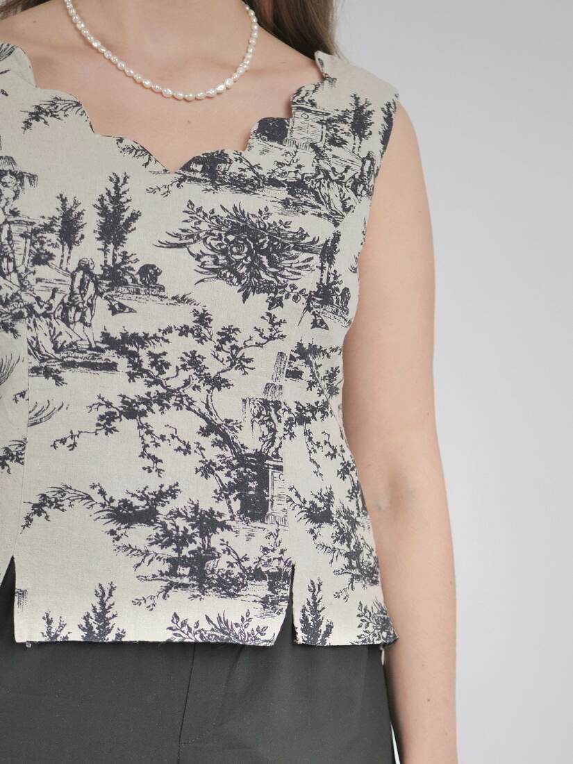 Lniany top w porcelanowe wzory. Zapinany na ukryty boczny zamek. Rozmiar z metki 8, bez wad.