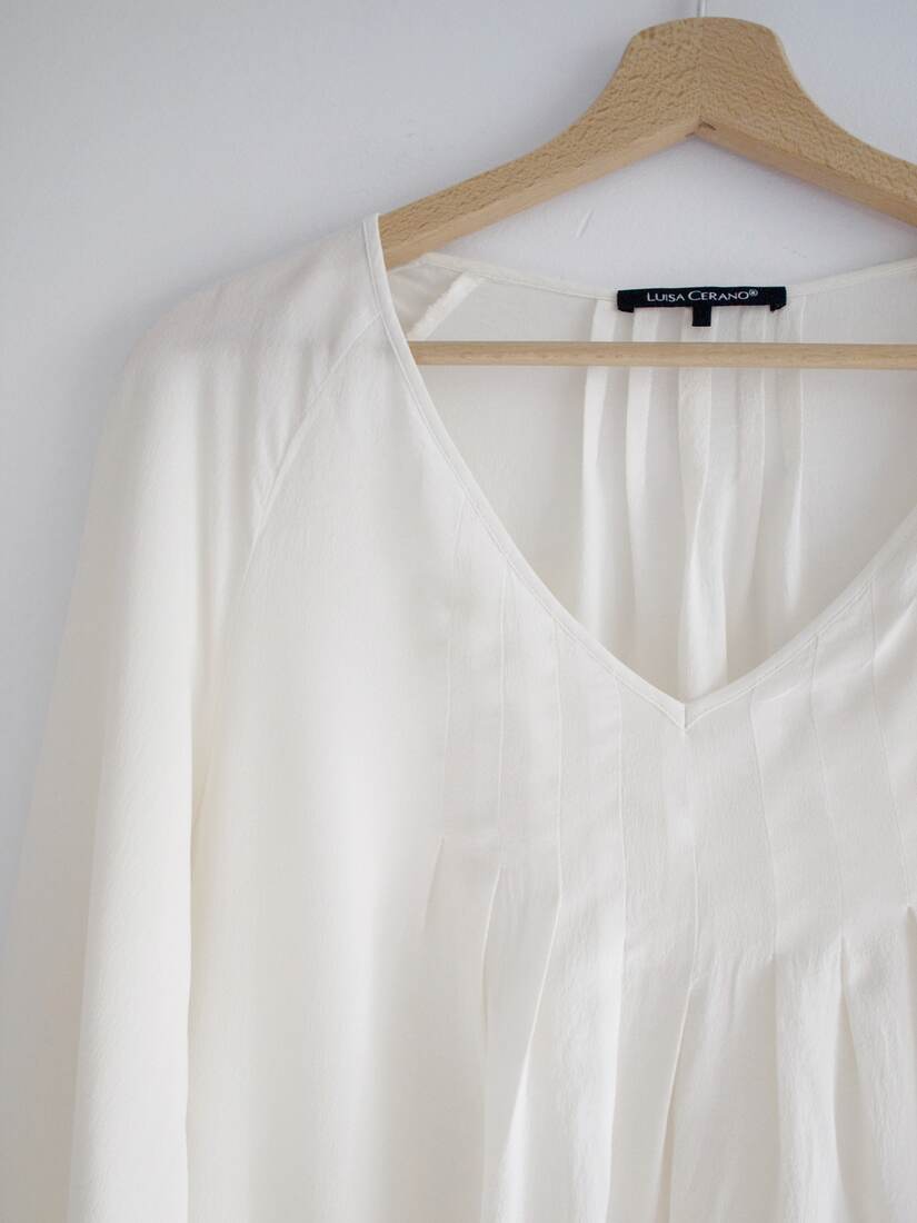 Bluzka luksusowej marki Luisa Cerano. Wewnętrzne metki są wycięte, jest to na 100% jedwab. Brak metki z rozmiarem, jest dość uniwersalny. Bardzo dobry stan.