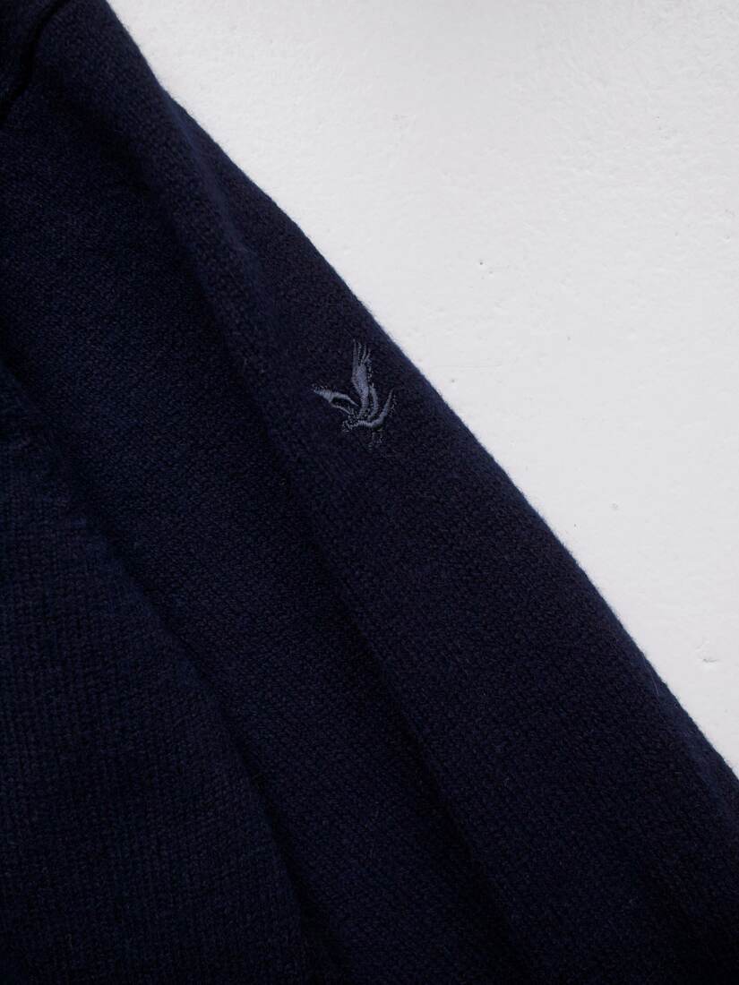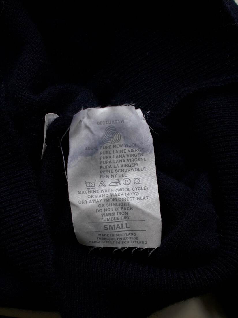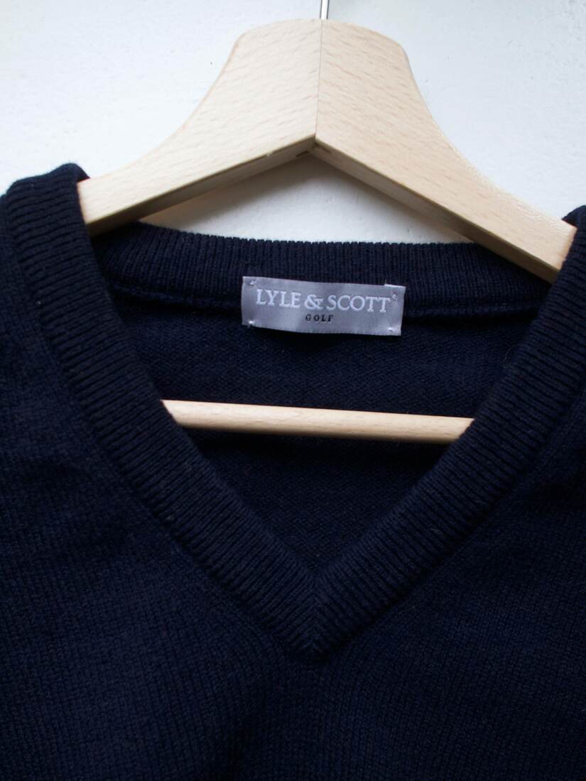 Granatowy wełniany sweter, szkocka marka Lyle & Scott. Grubszy materiał.