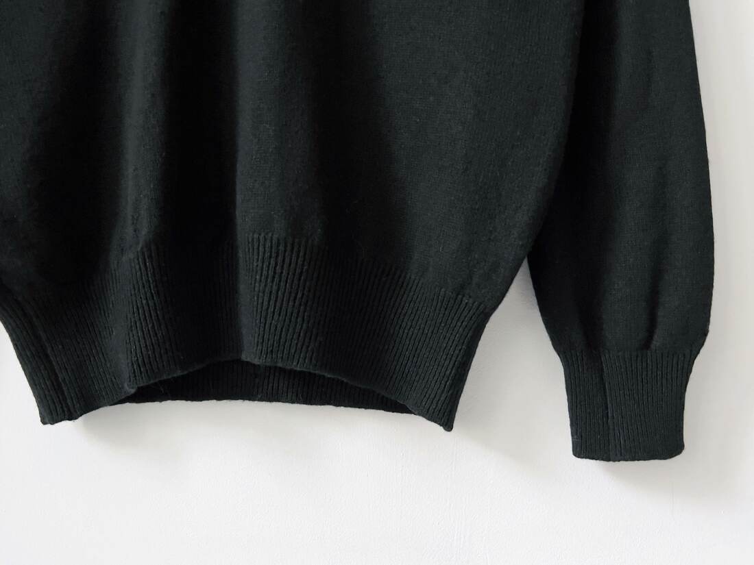 Sweter jest wykonany w 100% z wysokogatunkowej miękkiej wełny dziewiczej, made in UK. Brak etykiety z rozmiarem, ma nieco obniżone ramiona, będzie dobry na m/l, lub jako overize. Modelka ma 175 cm wzrostu. Idealny stan.