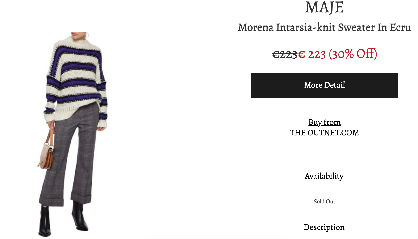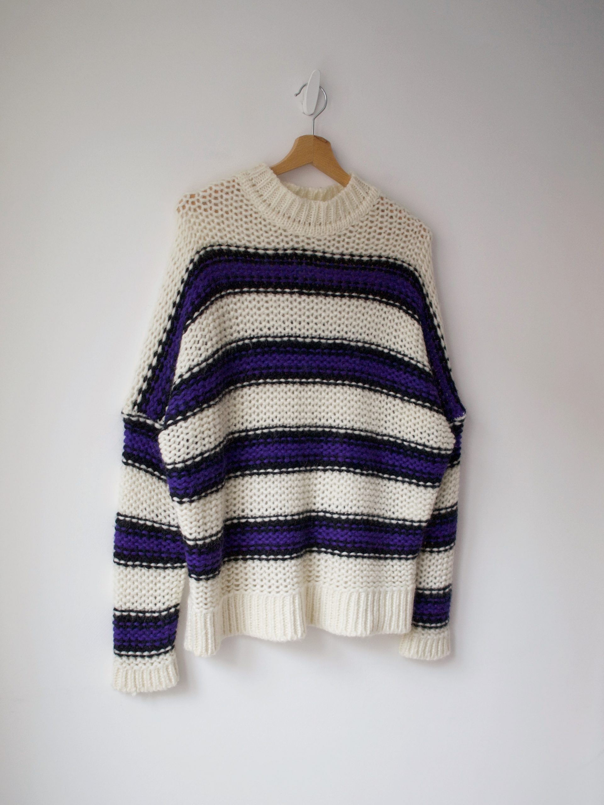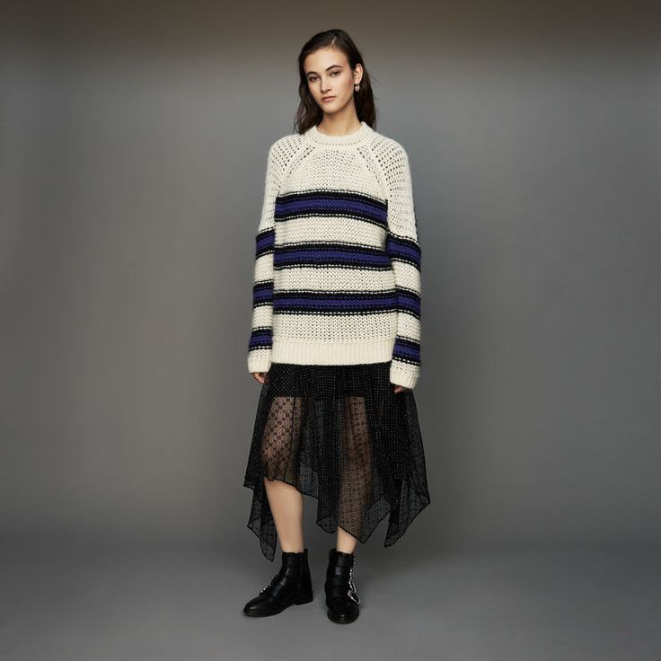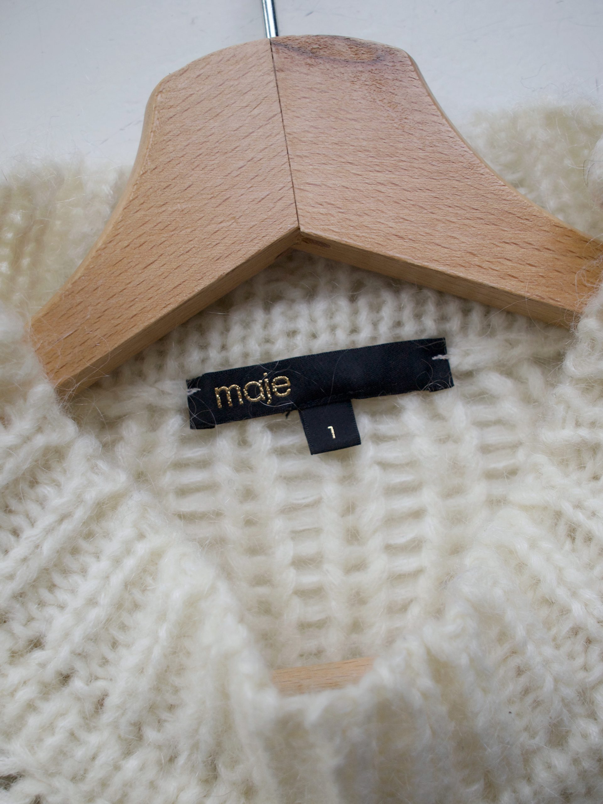 Sweter o luźnym splocie, ekskluzywna marka Maje Paris. Model Morena, cena katalogowa 223 EUR. Wykonany z puszystej tkaniny z dodatkiem moheru.