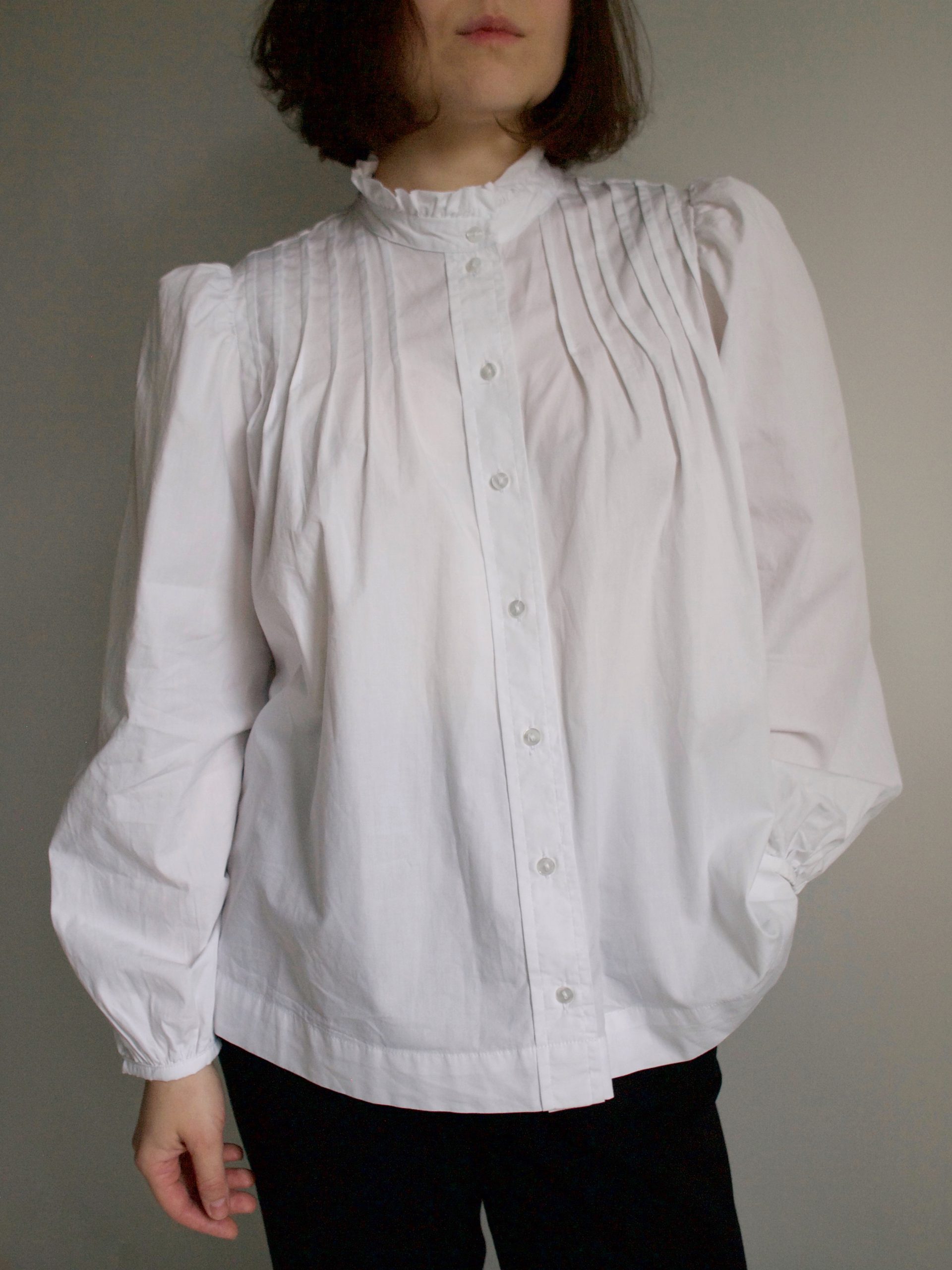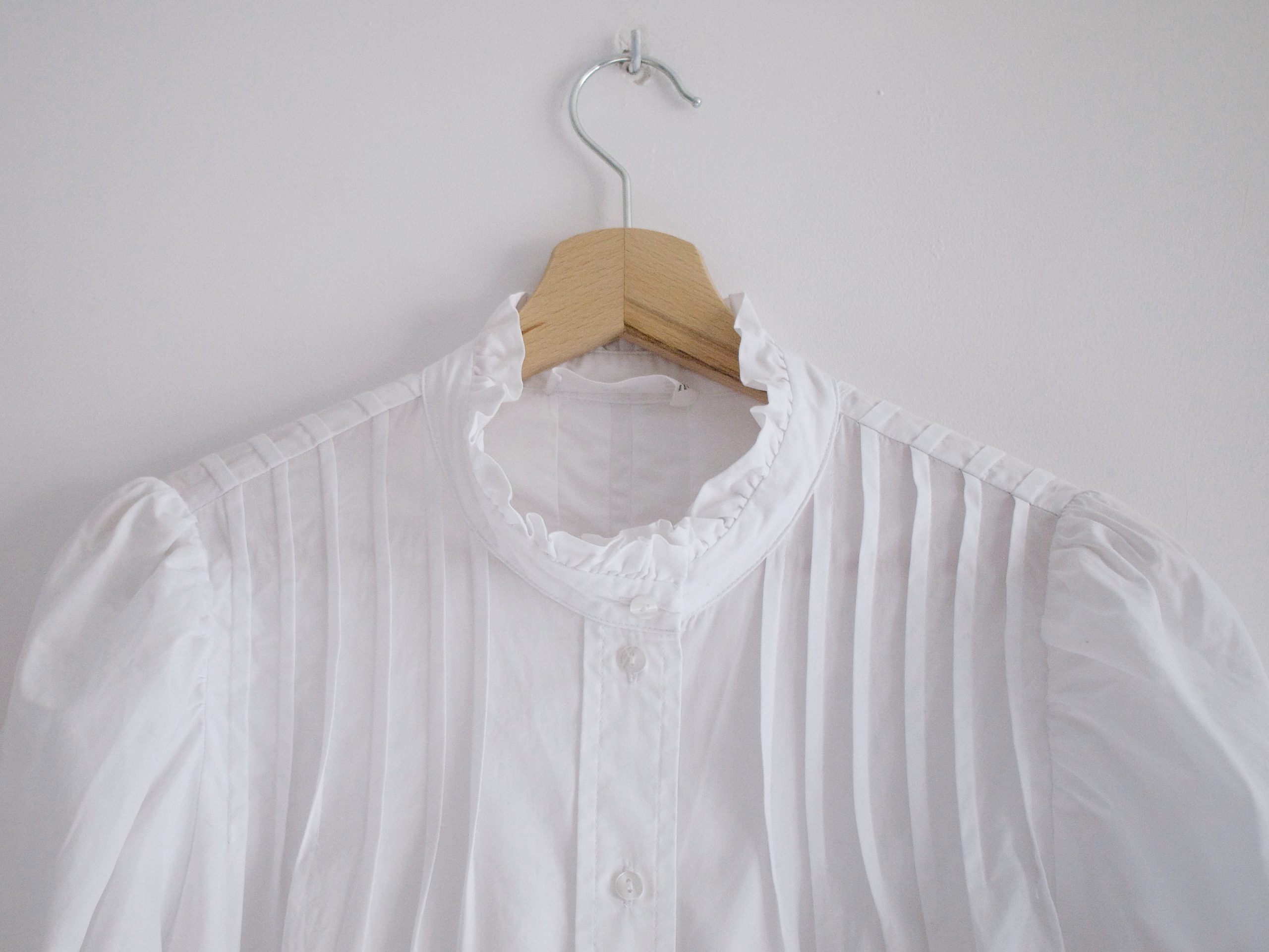 Koszula z kołnierzem stójką oraz bufiastymi rękawami. W 100% wykonana z bawełny. Rozmiar z metki S, idealny stan.
