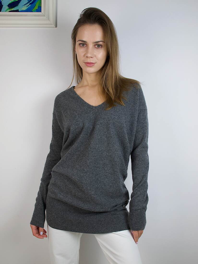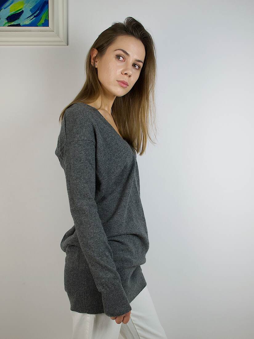 Długi sweter marki Marc O’Polo, 95% wełna, 5% kaszmir. Rozmiar z metki M, będzie pasować także na XS-S. Bez wad.