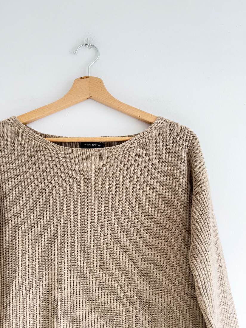 Minimalistyczny wełniany sweter z golfem. Idealny stan, materiał nie gryzie. Brak metki z rozmiarem, na oko jest to L, na mniejsze rozmiary idealny jako oversize (proszę sprawdzać wymiary).