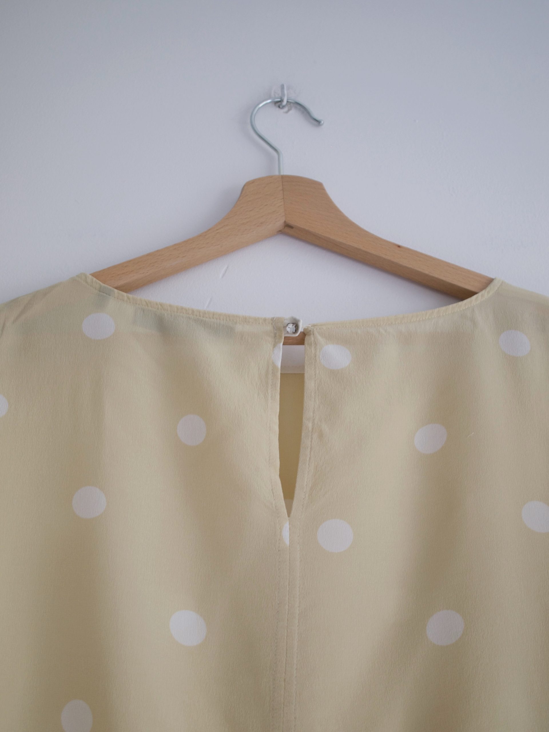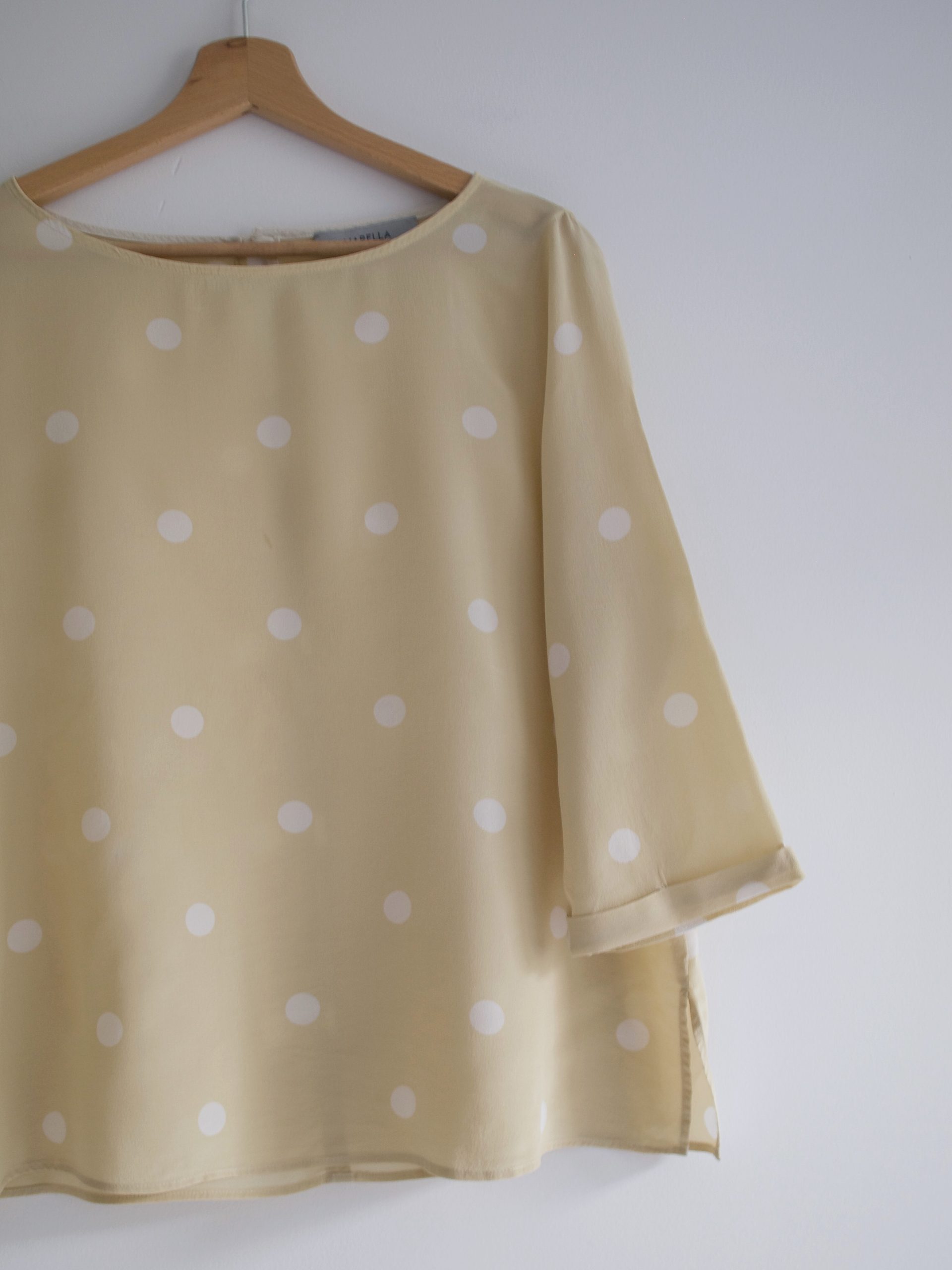 Rozmiar z metki: 44 Skład: jedwab Stan: bardzo dobry Szerokość w klatce 52 cm Długość całkowita 60 cm