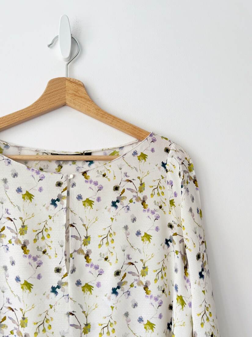 Bluzka marki Massimo Dutti w piękny akwarelowy wzór. Rękawy poszerzane. Rozmiar z metki 42, bez wad.