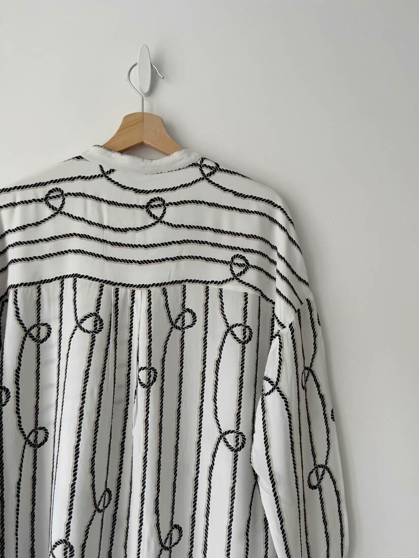 Kremowa koszula vintage z ozdobnymi guzikami i plisami na rękawach. Brak metki ze składem (prawdopodobnie poliester), materiał prawie nie gniecie się. Brak metki z rozmiarem, proszę sprawdzać wymiary. Bez wad.