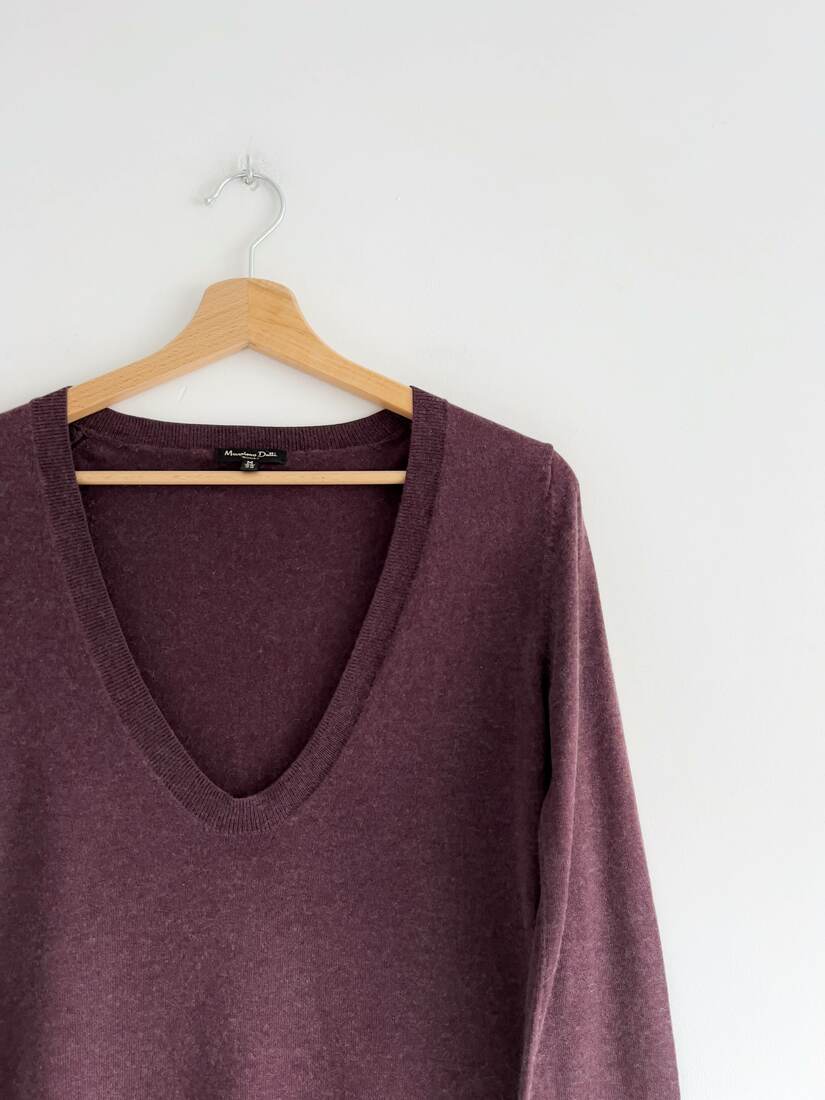 Cienki sweter marki Massimo Dutti. Wykonany z mieszanki jedwabiu i kaszmiru. Będzie pasować na S oraz na M jako dopasowany. Bez wad.