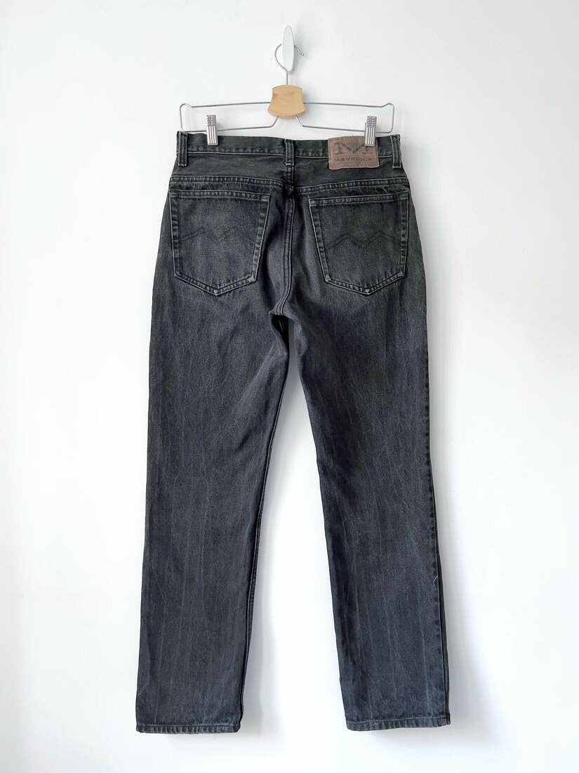 Jeansy vintage marki Maverick. 100% bawełna, nie rozciągliwe. Rozmiar z metki 32, polecam na L. Bez wad.