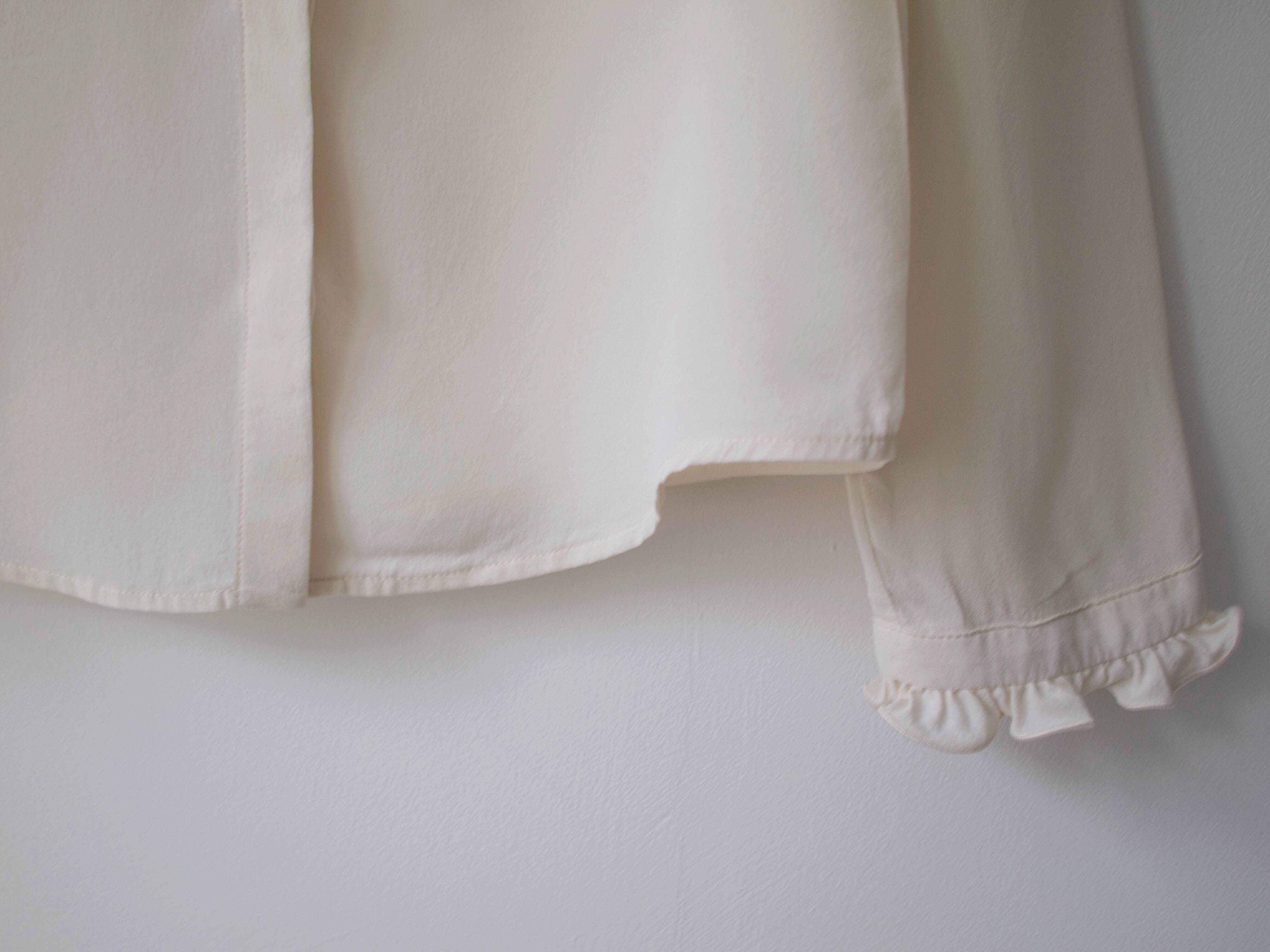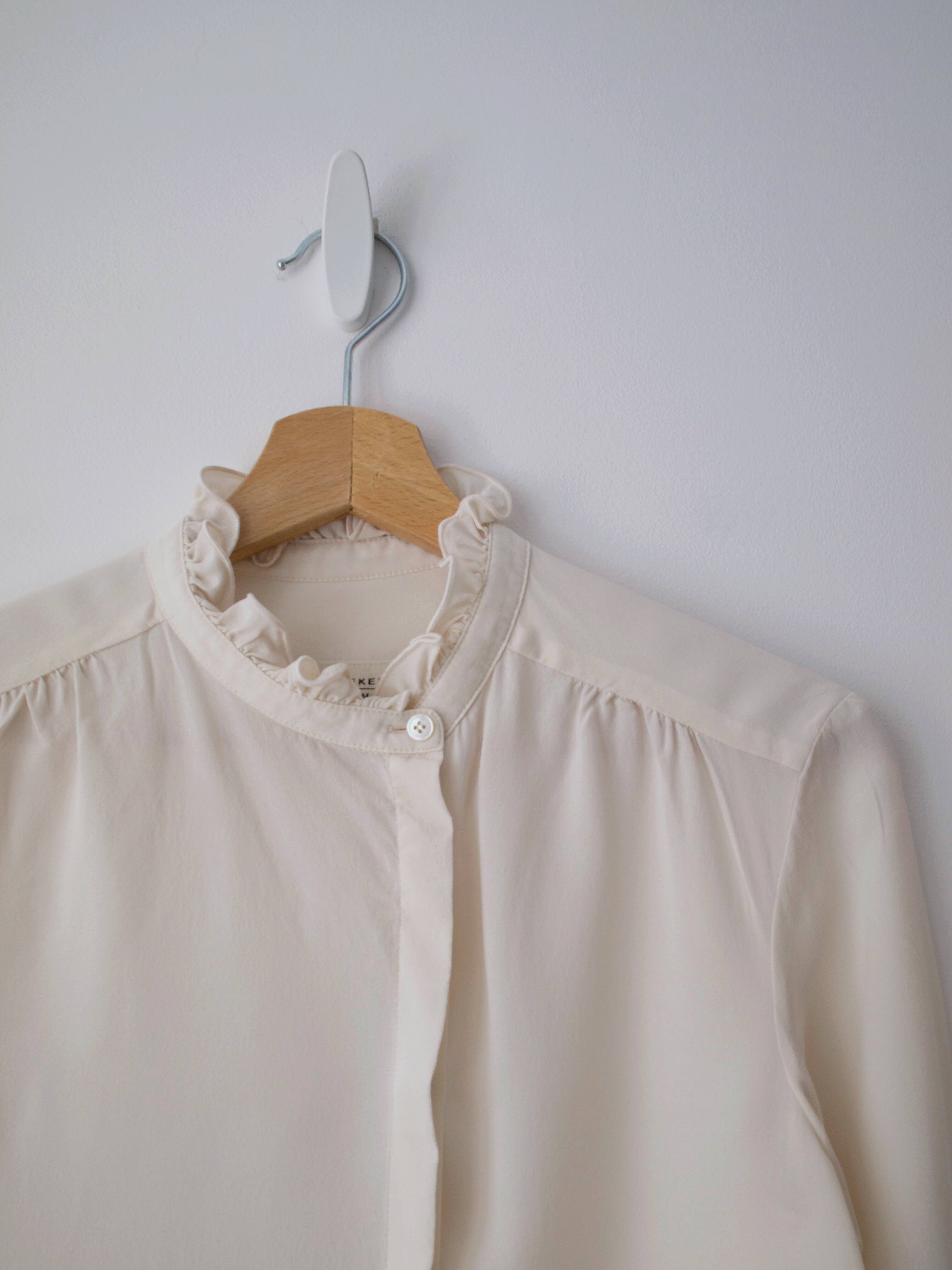Bluzka luksusowej marki Max Mara, linia Weekend. Asymetryczne zapięcie, kołnierz i rękawy wykończone falbankami.