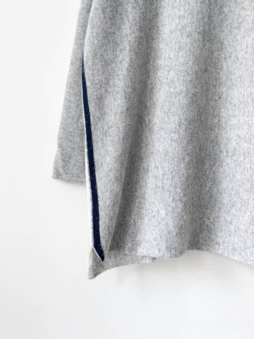 Sweter o pudełkowym kroju. Wykonany z tkaniny z dużym udziałem wełny oraz z dodatkiem kaszmiru. Rozmiar uniwersalny. Bez wad.
