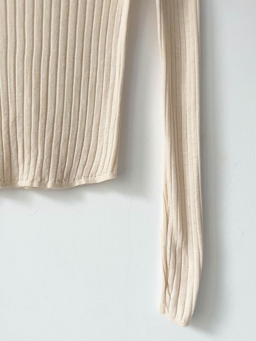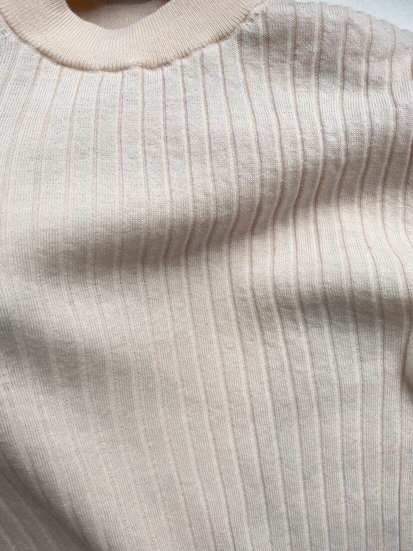 Lekki sweterek w prążki. Brak metki z składem, na pewno jest to wena z merynosa. Polecam na XS-S. Bez wad.