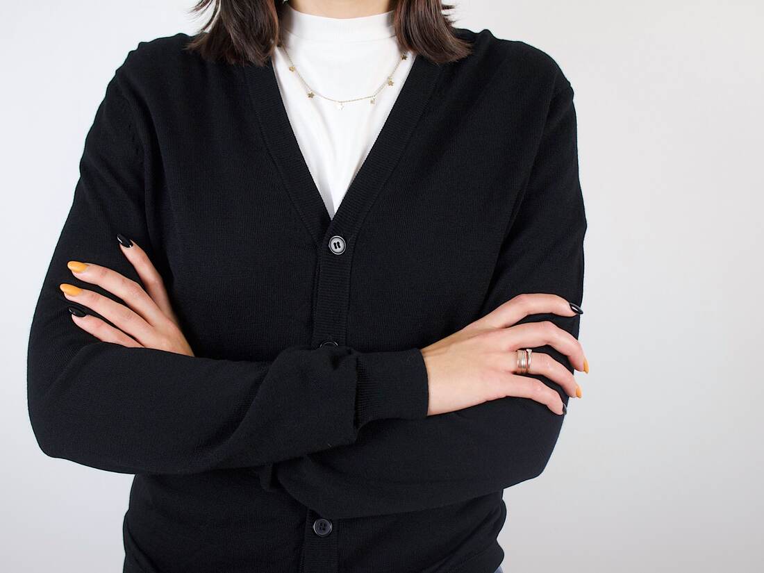 Kardigan marki H&M w 100% wykonany z wełny merynosów. Rozmiar z metki S. Na dole przy ściągaczu ma zacerowanie, nie widoczne w noszeniu, poza tym bez wad.