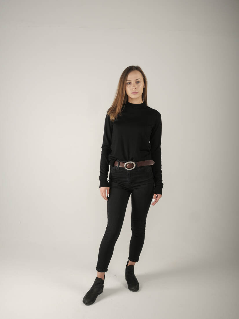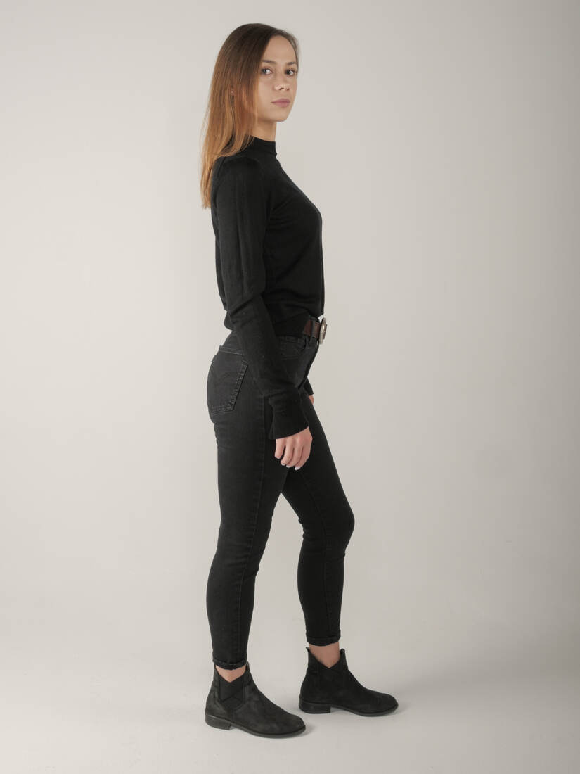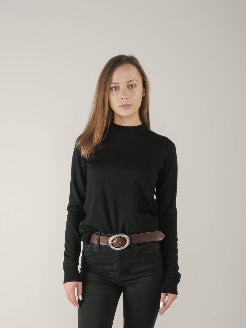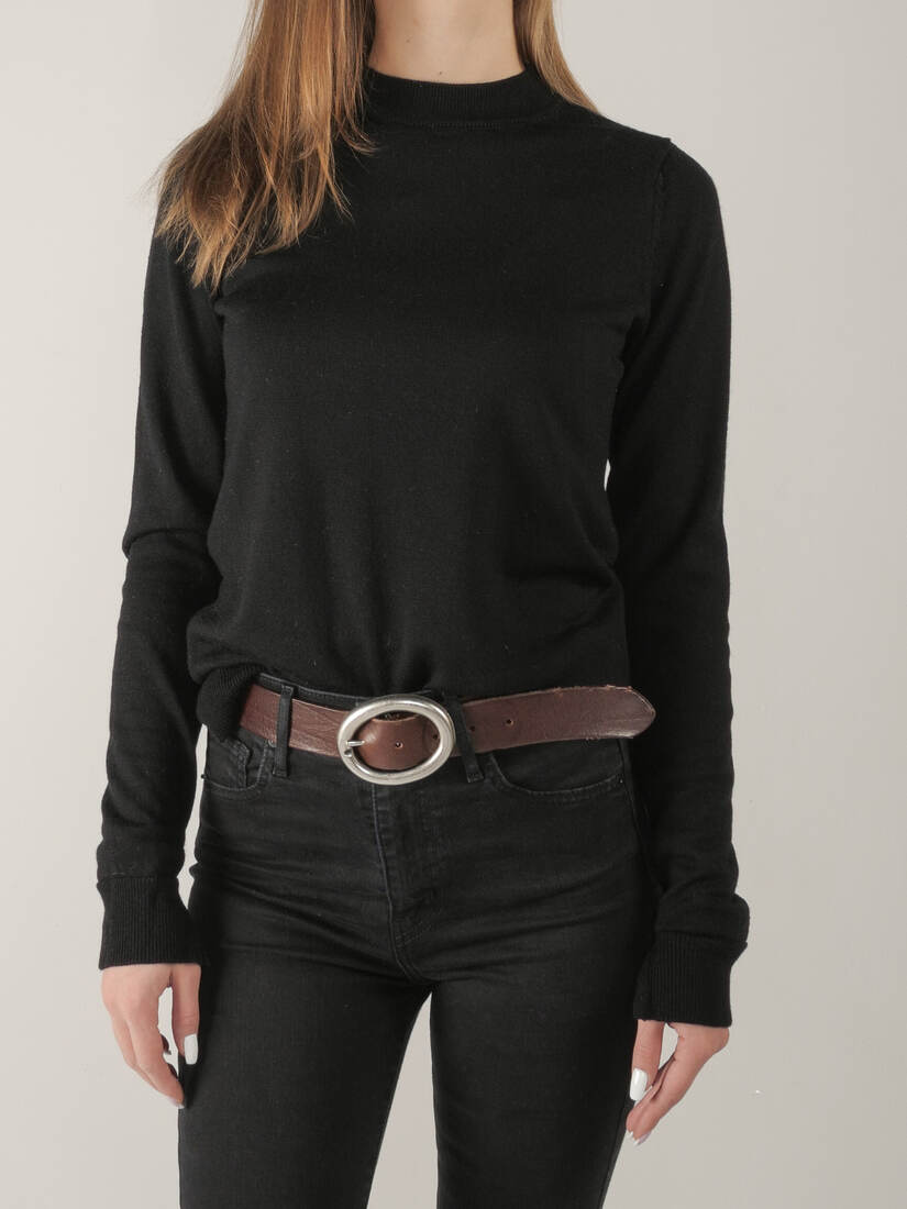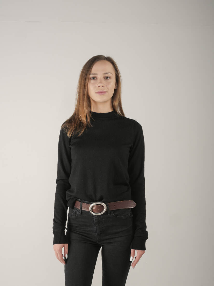 Minimalistyczny wełniany sweter z golfem. Idealny stan, materiał nie gryzie. Brak metki z rozmiarem, na oko jest to L, na mniejsze rozmiary idealny jako oversize (proszę sprawdzać wymiary).