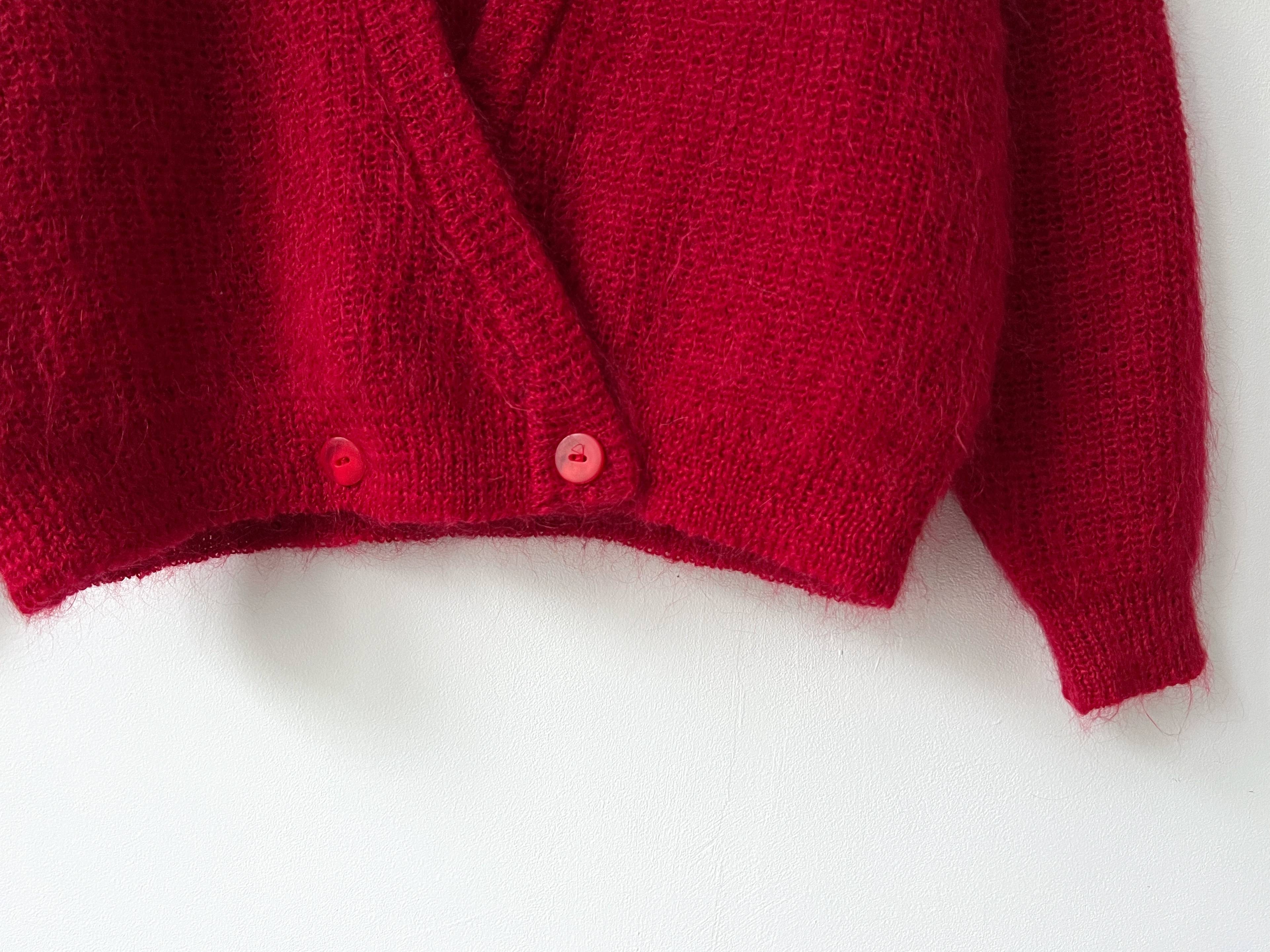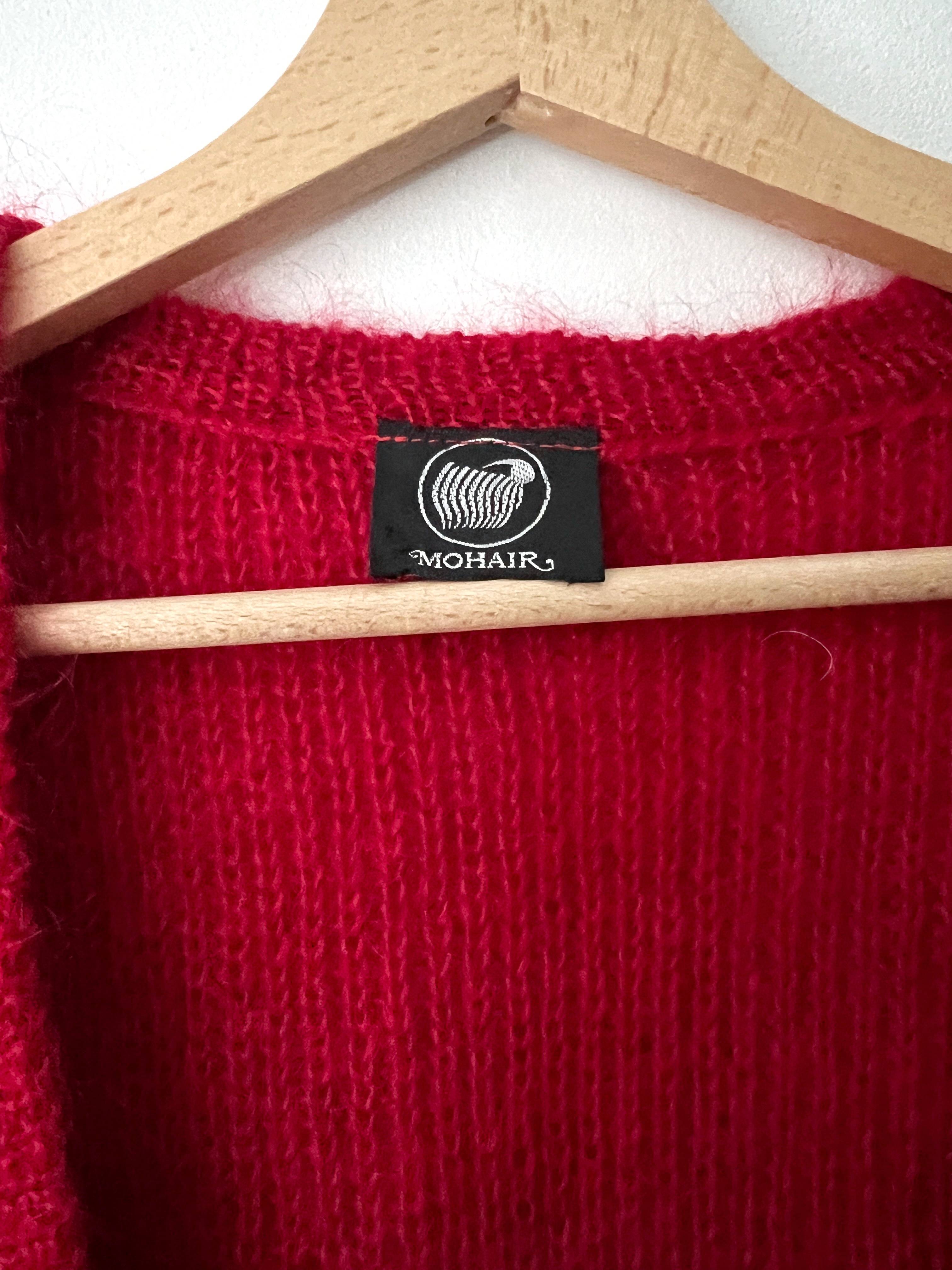 Bardzo puszysty sweter vintage, wykonany z tkaniny z dużym udziałem moheru. Idealny jako sweter świąteczny