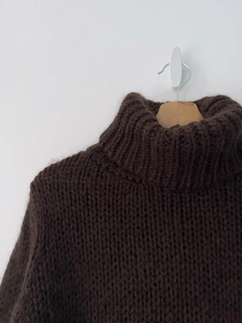 Puszysty golf o grubym splocie. Brak metki ze składem, na pewno ma w składzie moher, puszysty. Rozmiar z metki S, bardzo dobry stan.