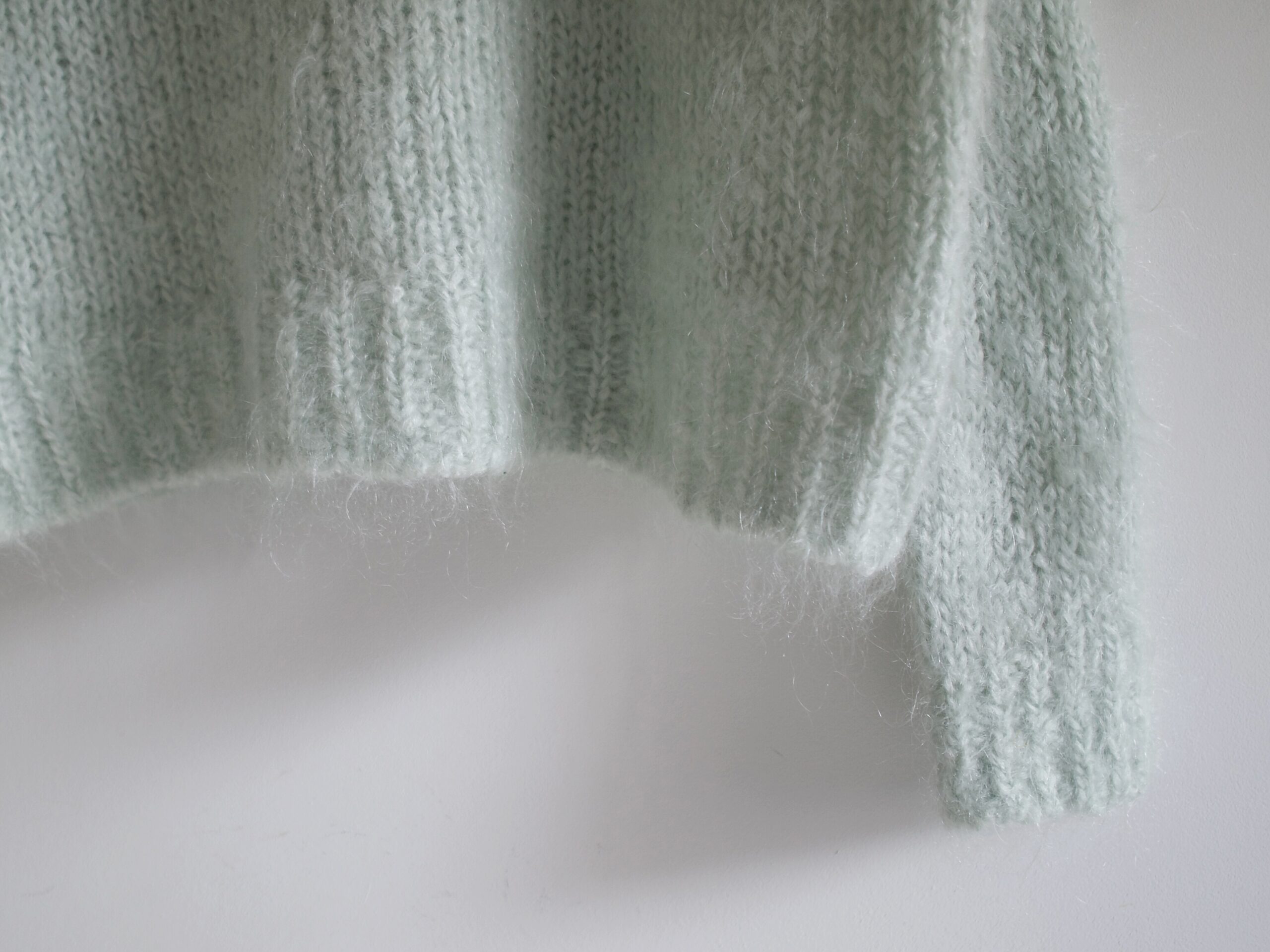 Kardigan o krótszym kroju, idealny do wysokich spodni. Rozmiar z metki M. Sweterek mimo zawartości moheru w składzie nie gryzie, jest mięciutki i miły w dotyku.