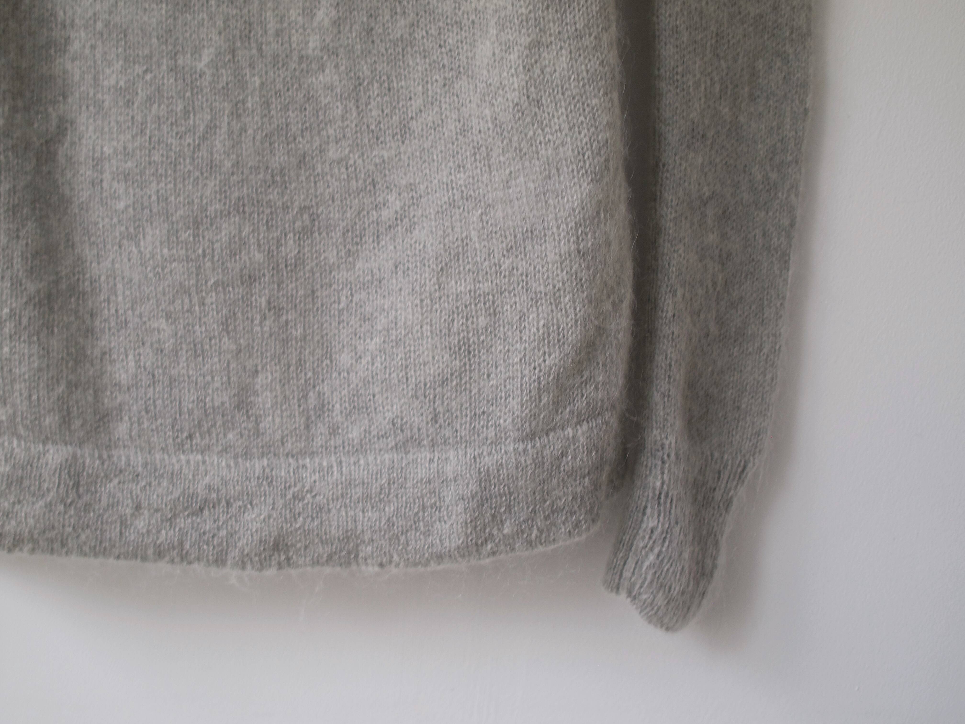 Klasyczny sweter M&S z dekoltem w serek. Skład to 100% kaszmir, bardzo dobry stan, jest minimalnie sfilcowany, nie jest to zauważalne, po prostu jest trochę sztywniejszy.