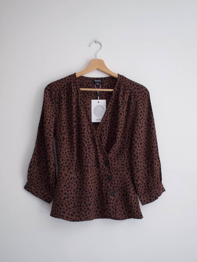 Kardigan o krótszym kroju, idealny do wysokich spodni. Rozmiar z metki M. Sweterek mimo zawartości moheru w składzie nie gryzie, jest mięciutki i miły w dotyku.