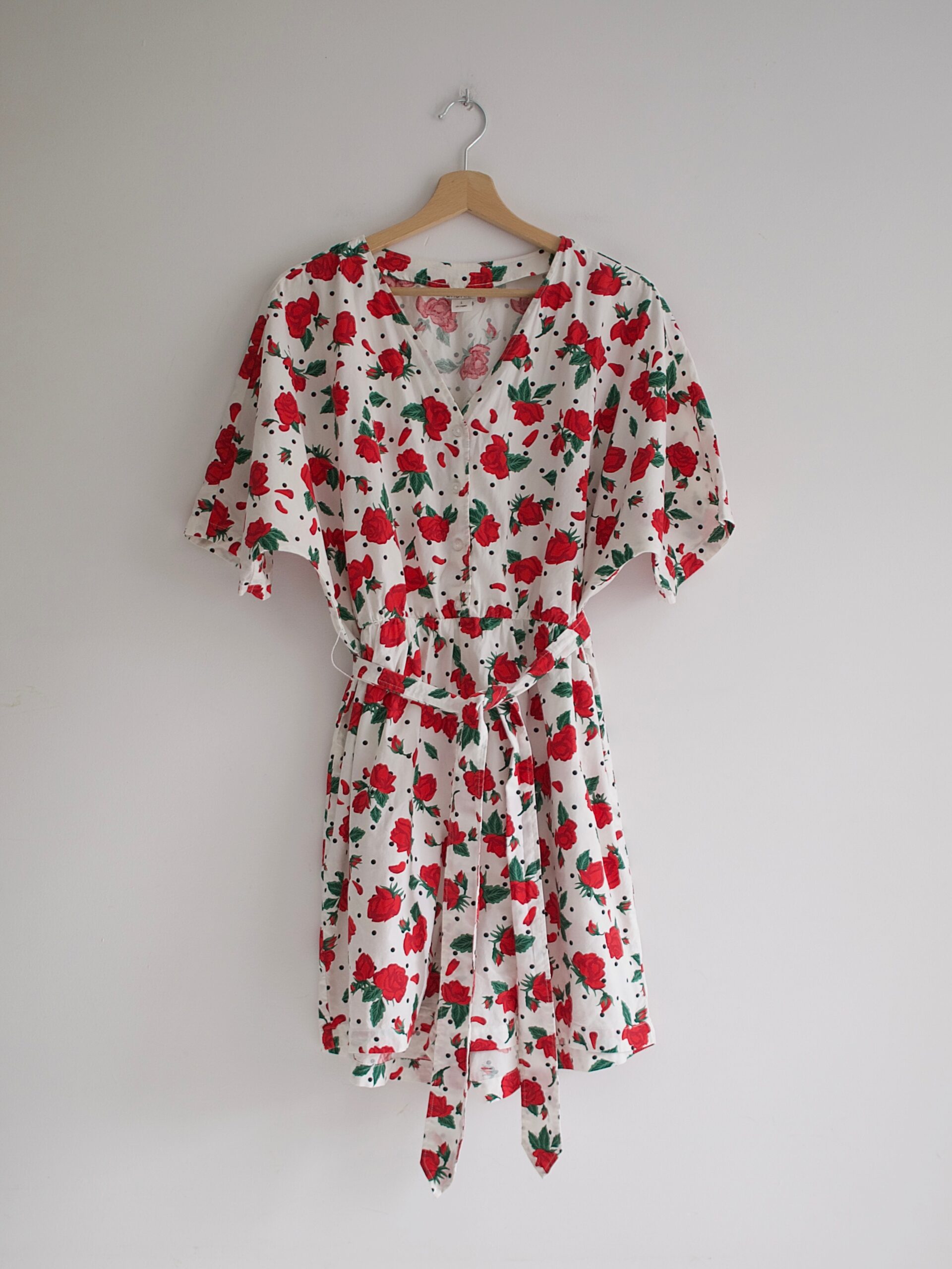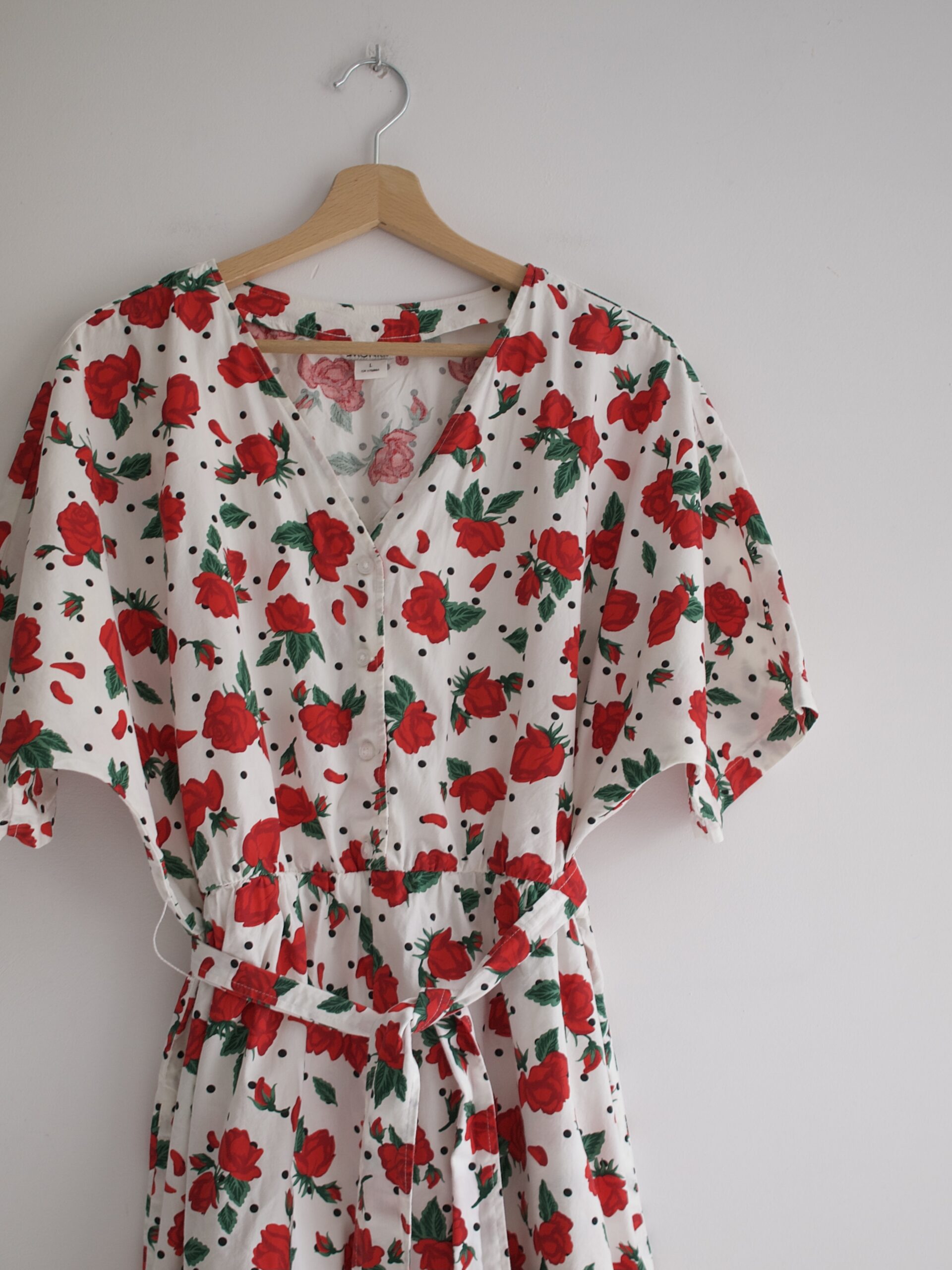 Rozmiar: L, luźny Skład: 100% bawełna Stan: bez wad Szerokość w klatce 55 cm Szerokość w pasie 42-50 cm