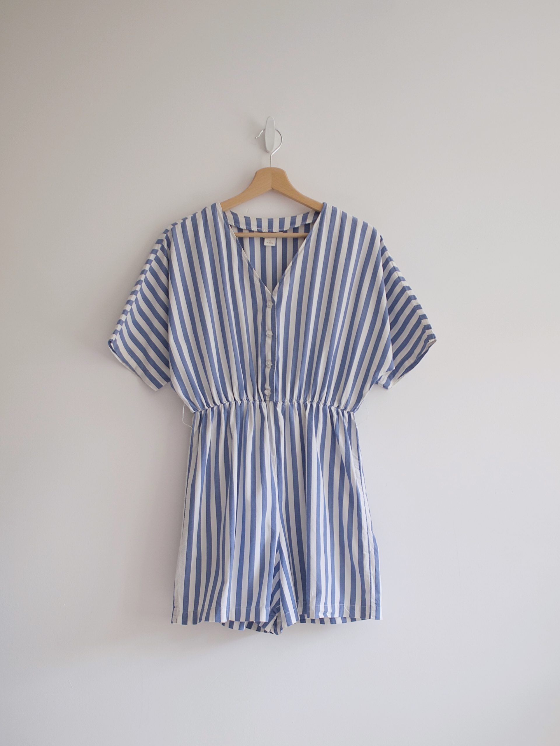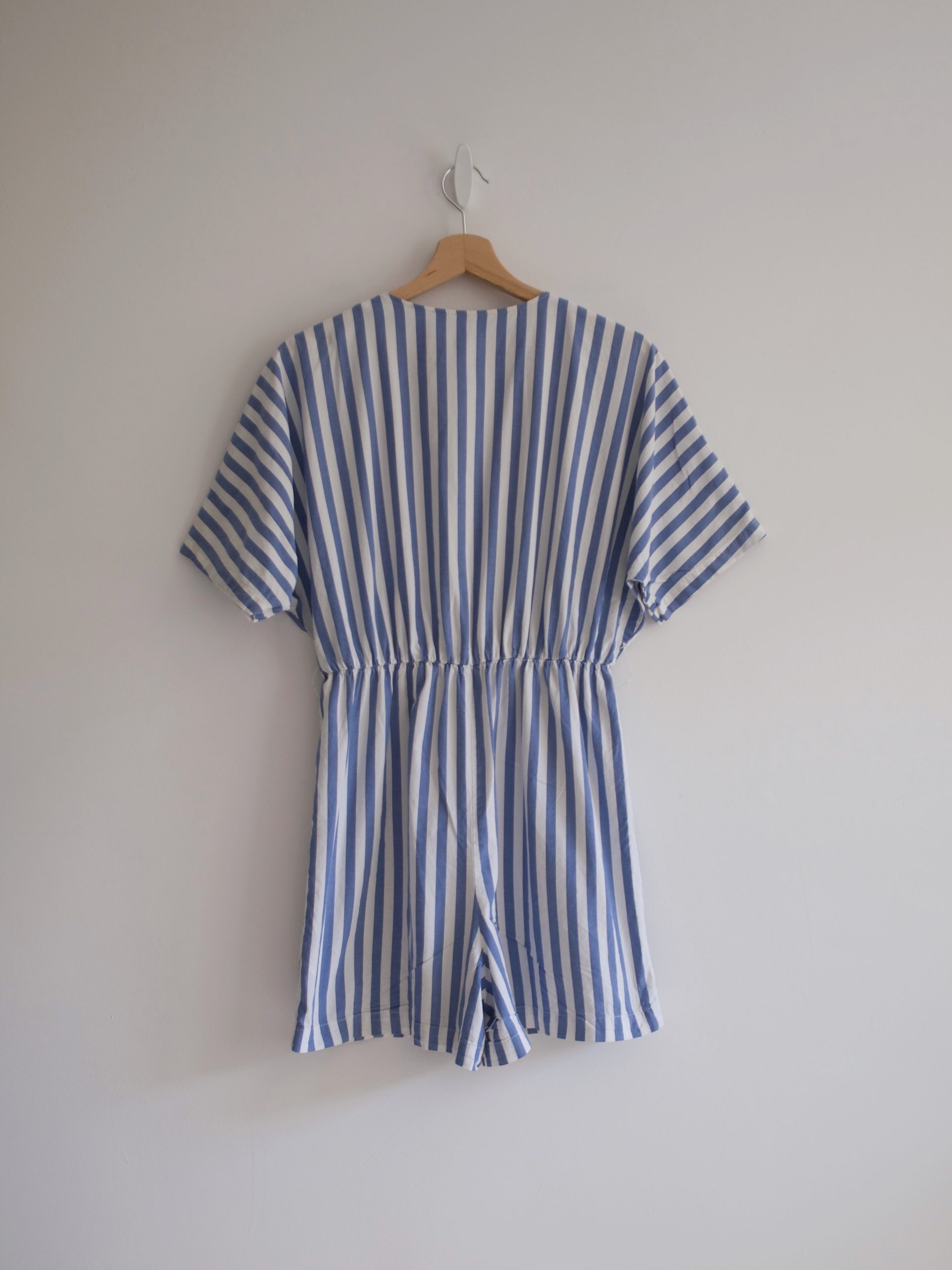 Kombinezon skandynawskiej marki Monki o luźniejszym fasonie. Z kieszeniami, w pasie gumka Rozmiar z metki: S Skład: 100% bawełna Stan: idealny Szerokość w klatce 45 cm Długośćcałkowita 80 cm