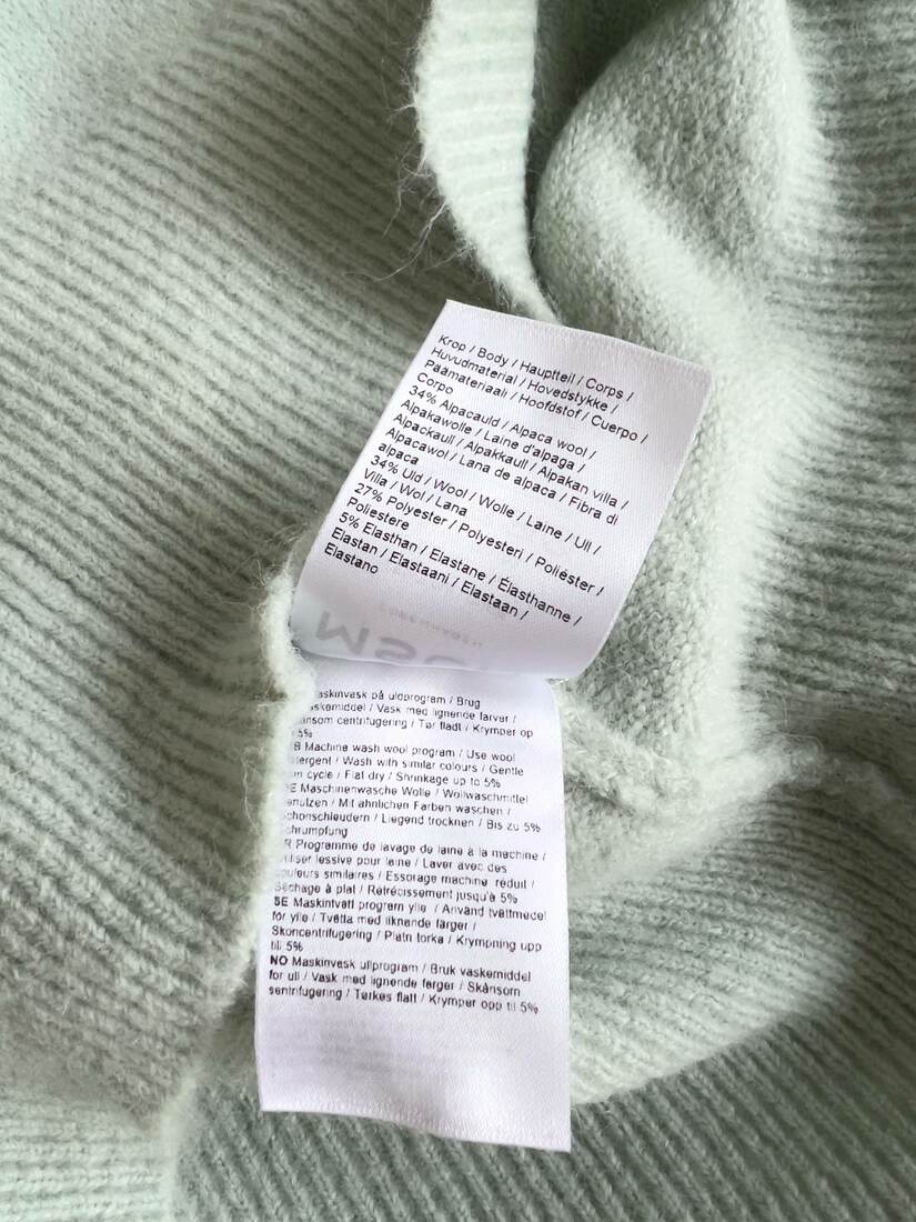 Sweter skandynawskiej marki Moss Copenhagen. Wykonany z tkaniny z dużym udziałem alpaki oraz wełny. Rozmiar z metki XS/S, idealny stan.