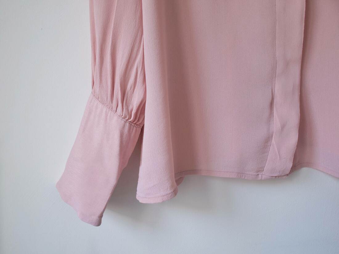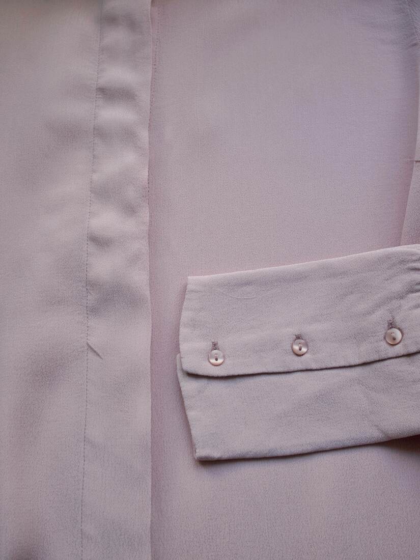 Kremowa koszula vintage z ozdobnymi guzikami i plisami na rękawach. Brak metki ze składem (prawdopodobnie poliester), materiał prawie nie gniecie się. Brak metki z rozmiarem, proszę sprawdzać wymiary. Bez wad.