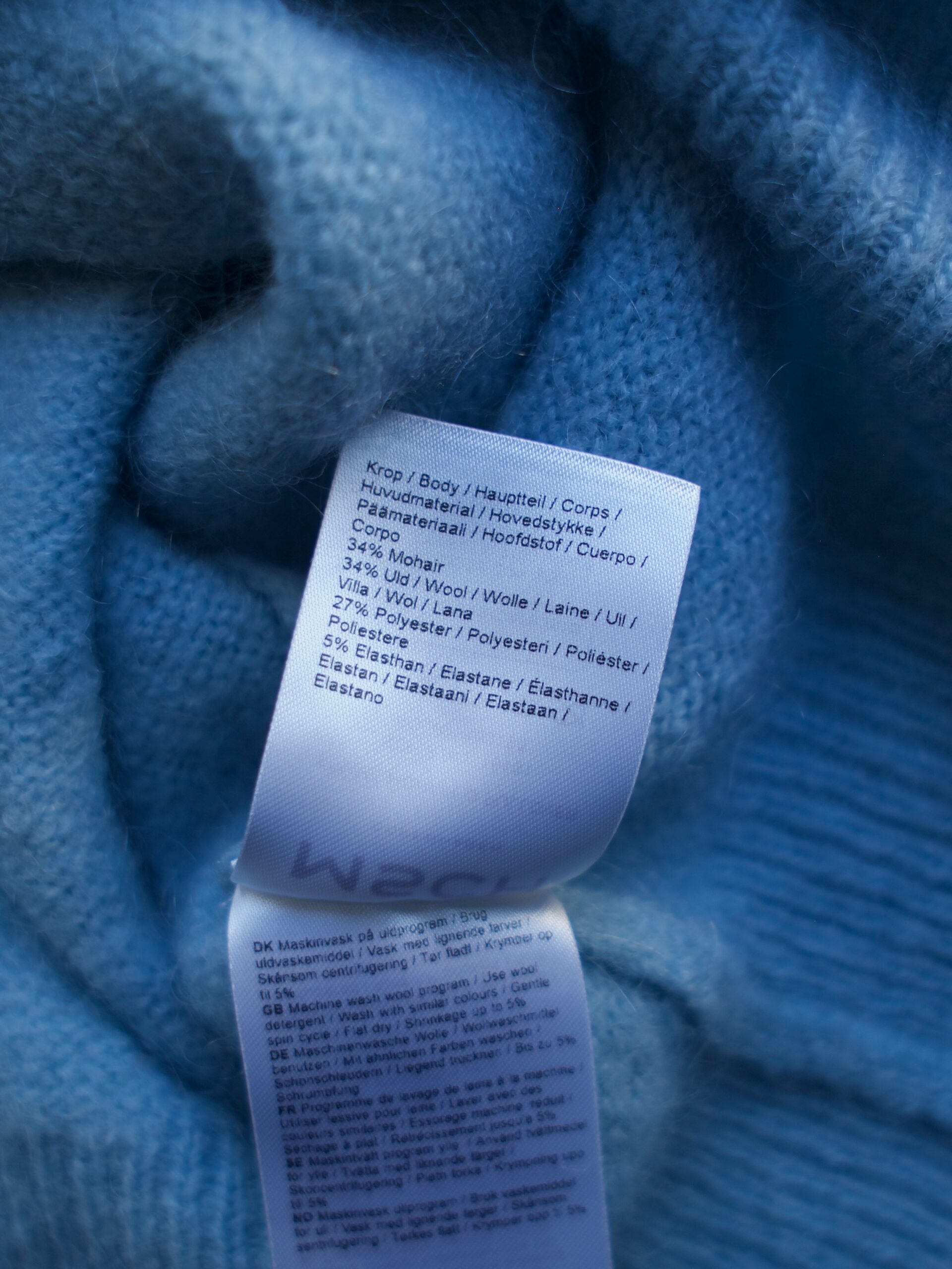 Skład: 34% moher, 34% wełna, 27% poliester, 5% elastan