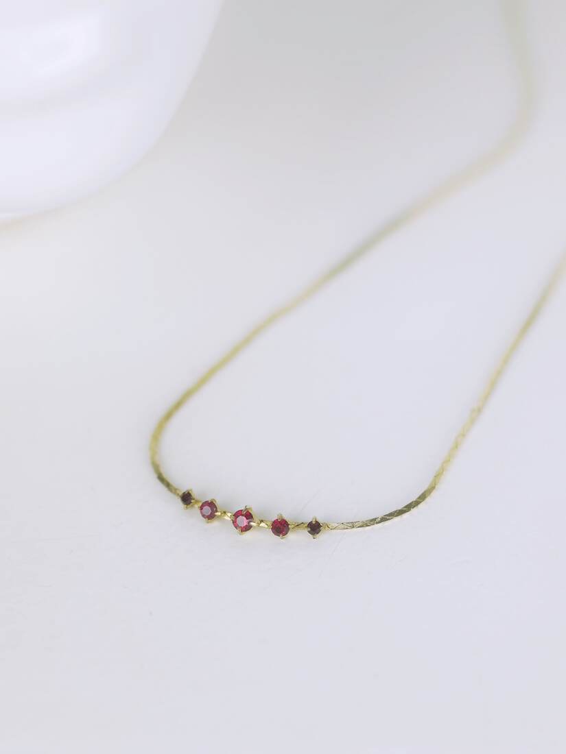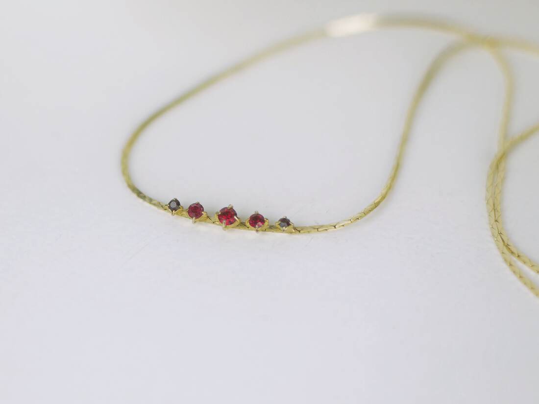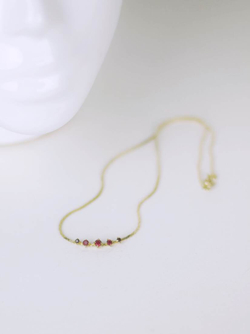 Naszyjnik vintage w kolorze złota, z kamieniami imitującymi rubiny. Długość 45 cm, bez wad.