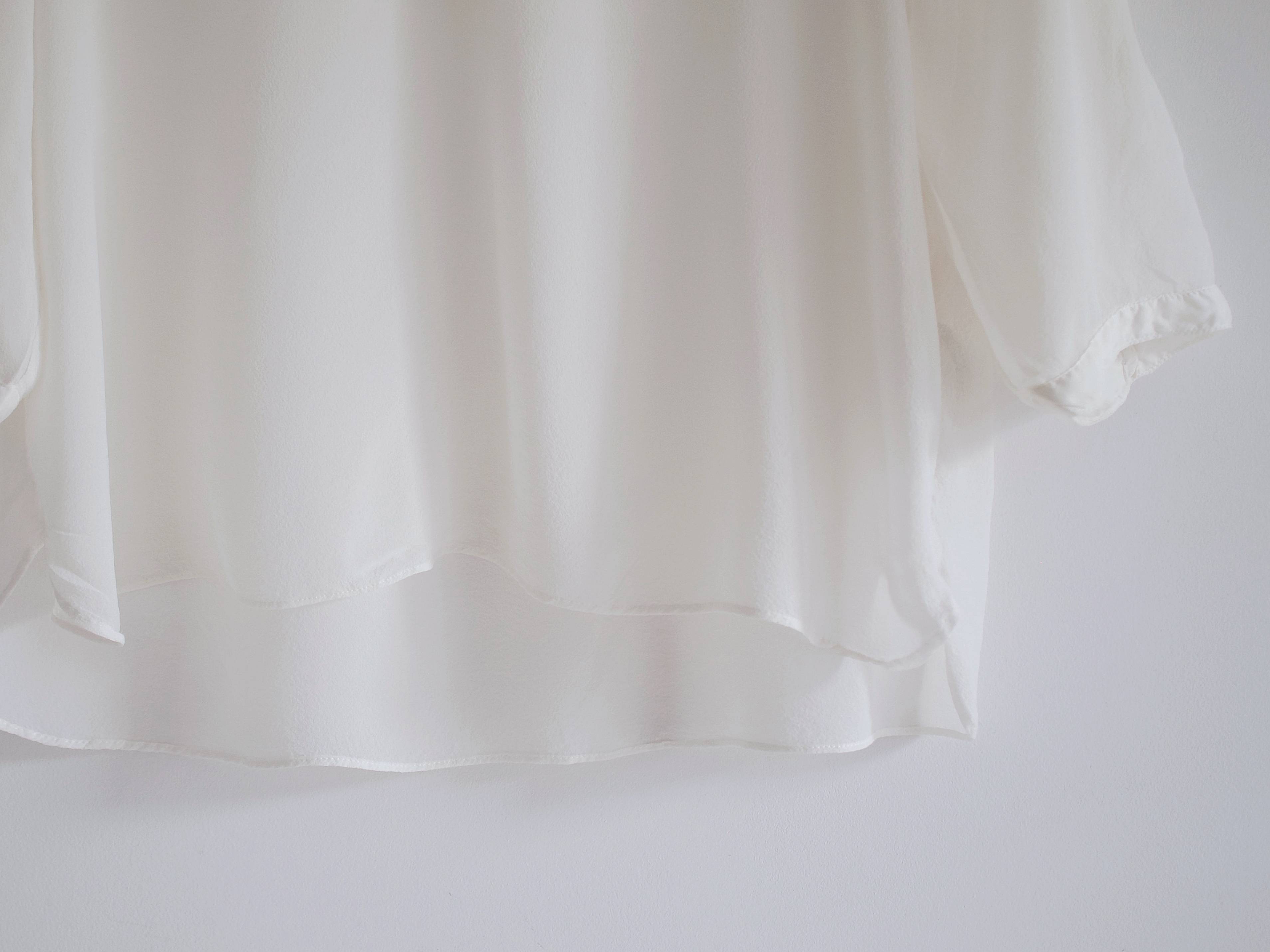 Minimalistyczny kaszmirowy sweter o pudełkowym kroju. Sweter bardzo miękki i przyjemny, ma dwie małe zacerowane dziurki, nie widoczne w noszeniu, poza tym brak mankamentów. Wymiary poniżej.