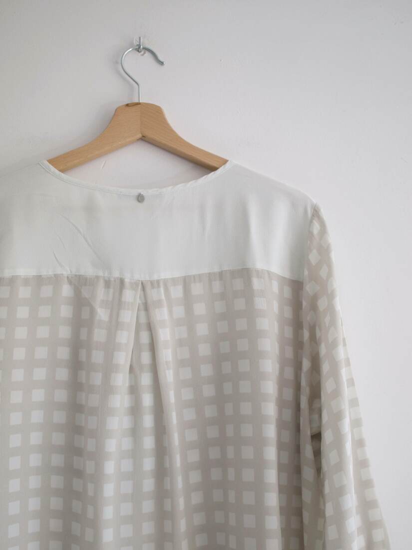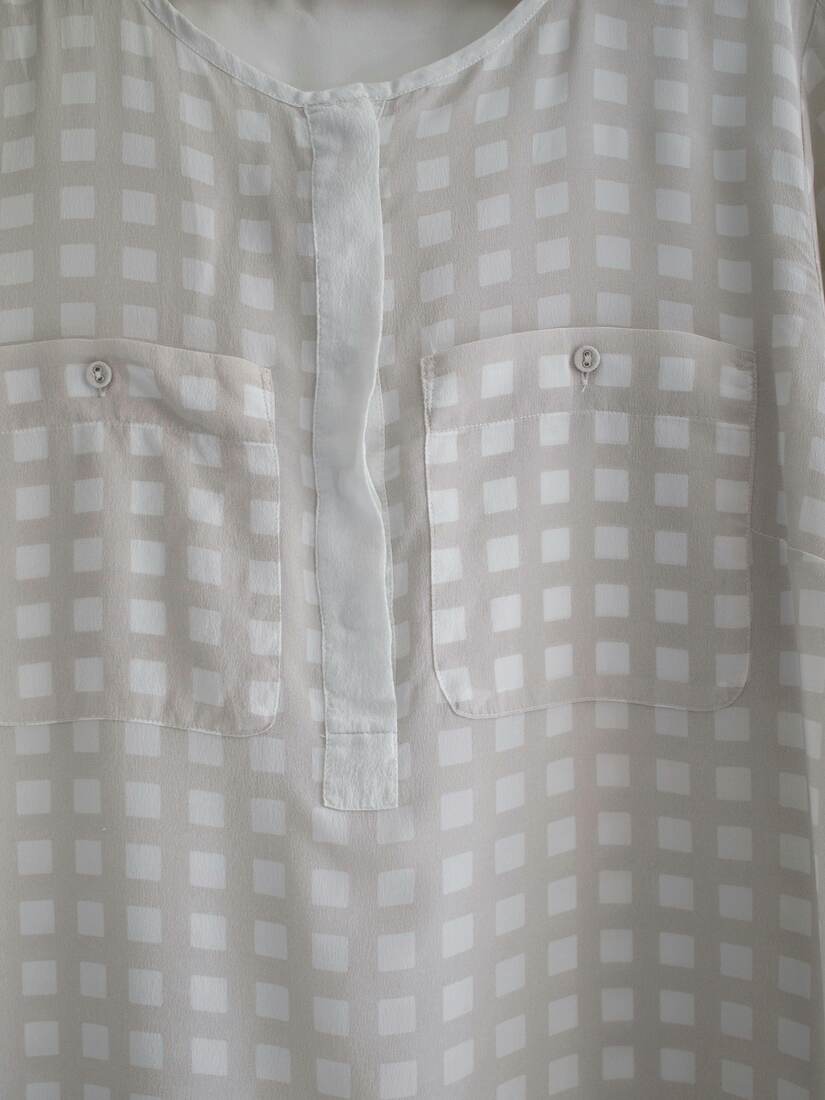 Kremowa koszula vintage z ozdobnymi guzikami i plisami na rękawach. Brak metki ze składem (prawdopodobnie poliester), materiał prawie nie gniecie się. Brak metki z rozmiarem, proszę sprawdzać wymiary. Bez wad.