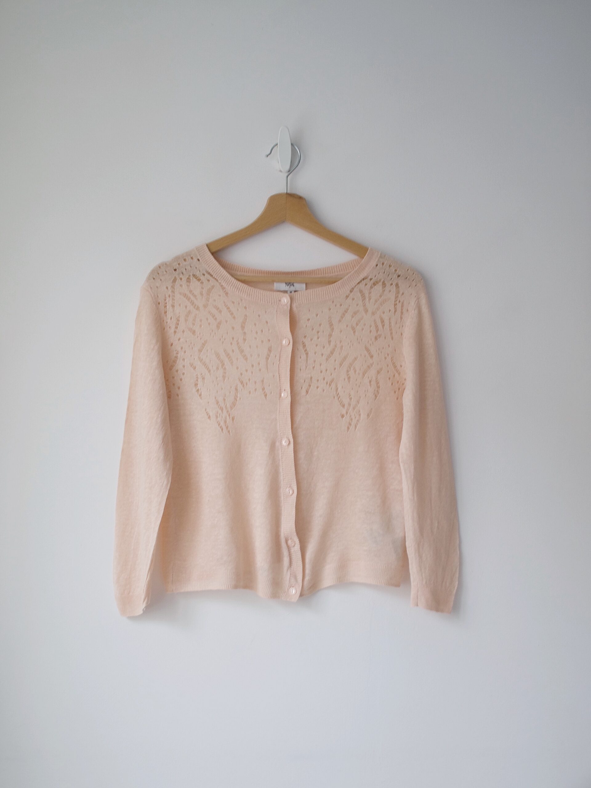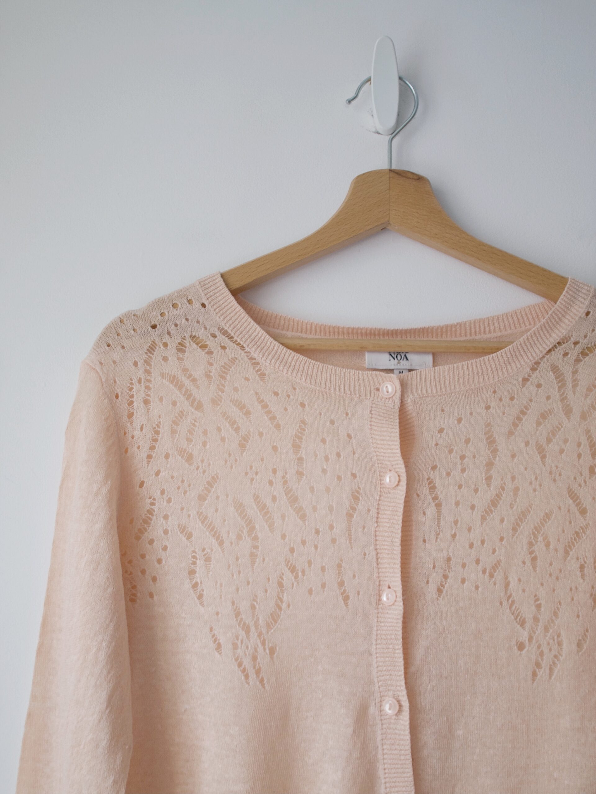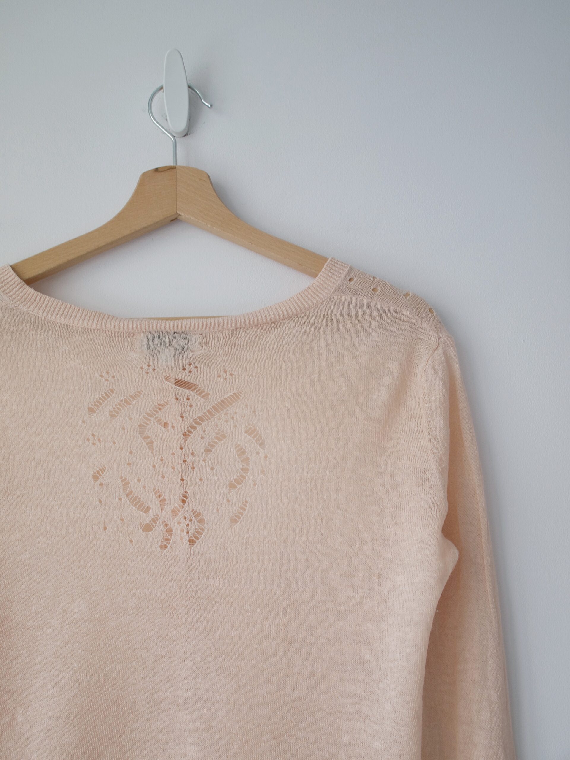 Cienki ażurowy sweter duńskiej marki Noa Noa. Rozmiar z metki: M, polecam również na XS-S Skład: 83% len 17% poliamid Stan: bez wad Szerokość w klatce 45 cm Długośćcałkowita 51 cm