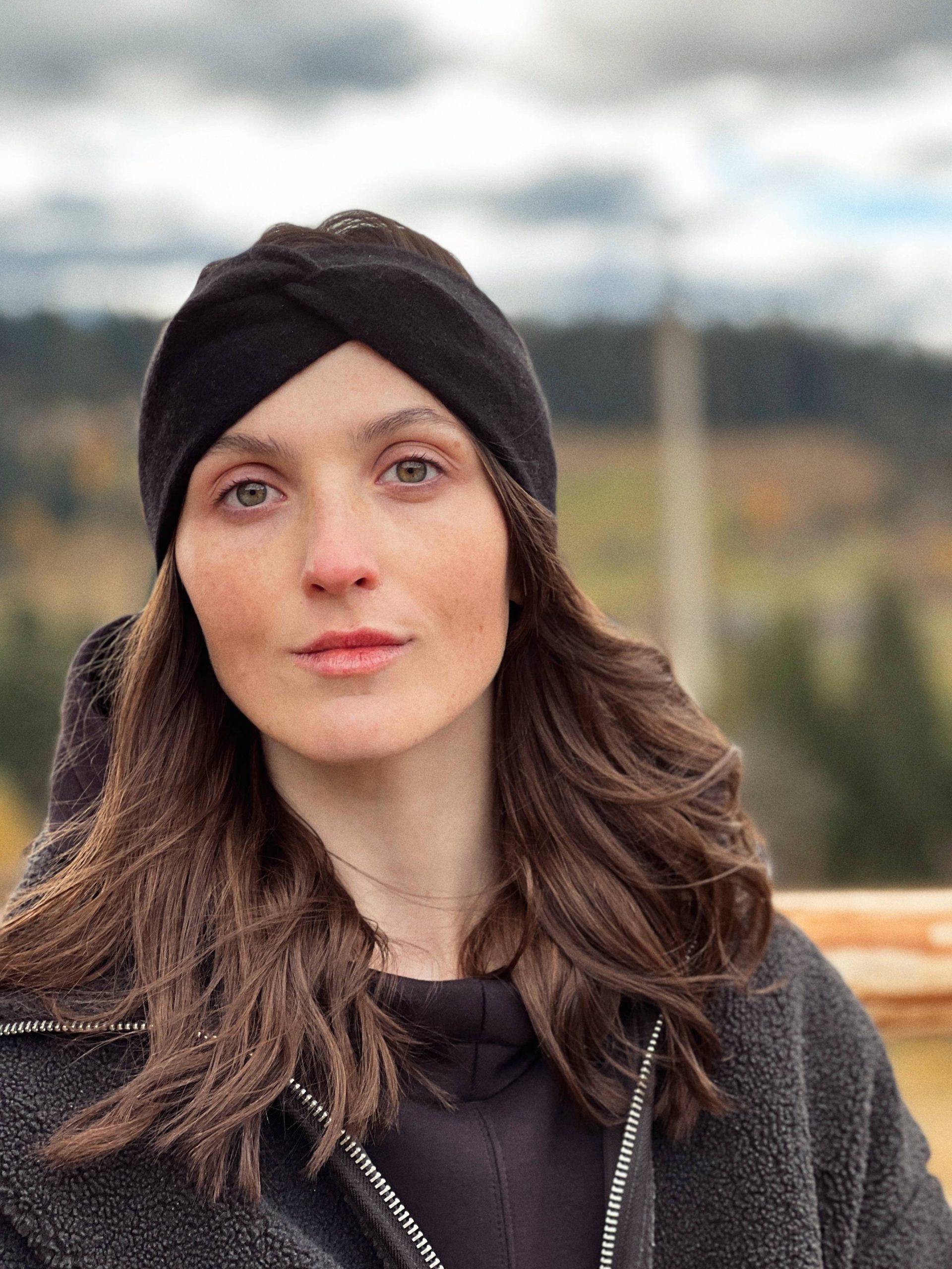 Ciepła opaska na głowę. W 100% szyta z kaszmiru z odzysku. Szerokość 10 cm, średnica około 18 cm Skład: 100% kaszmir