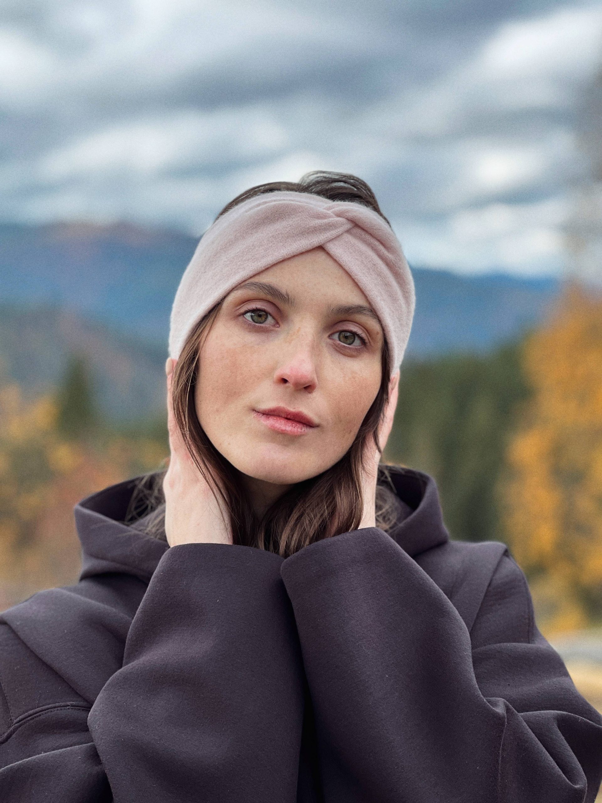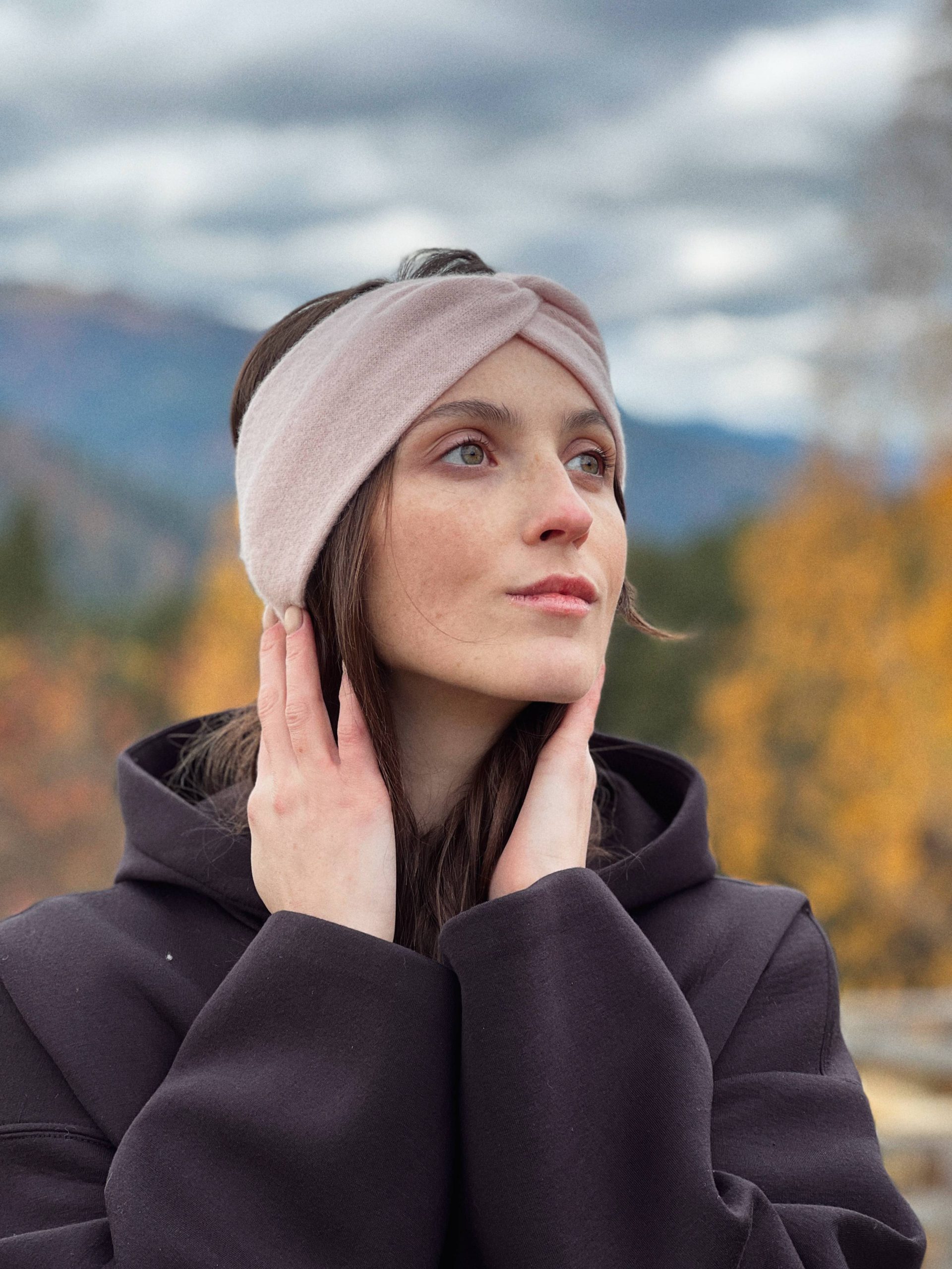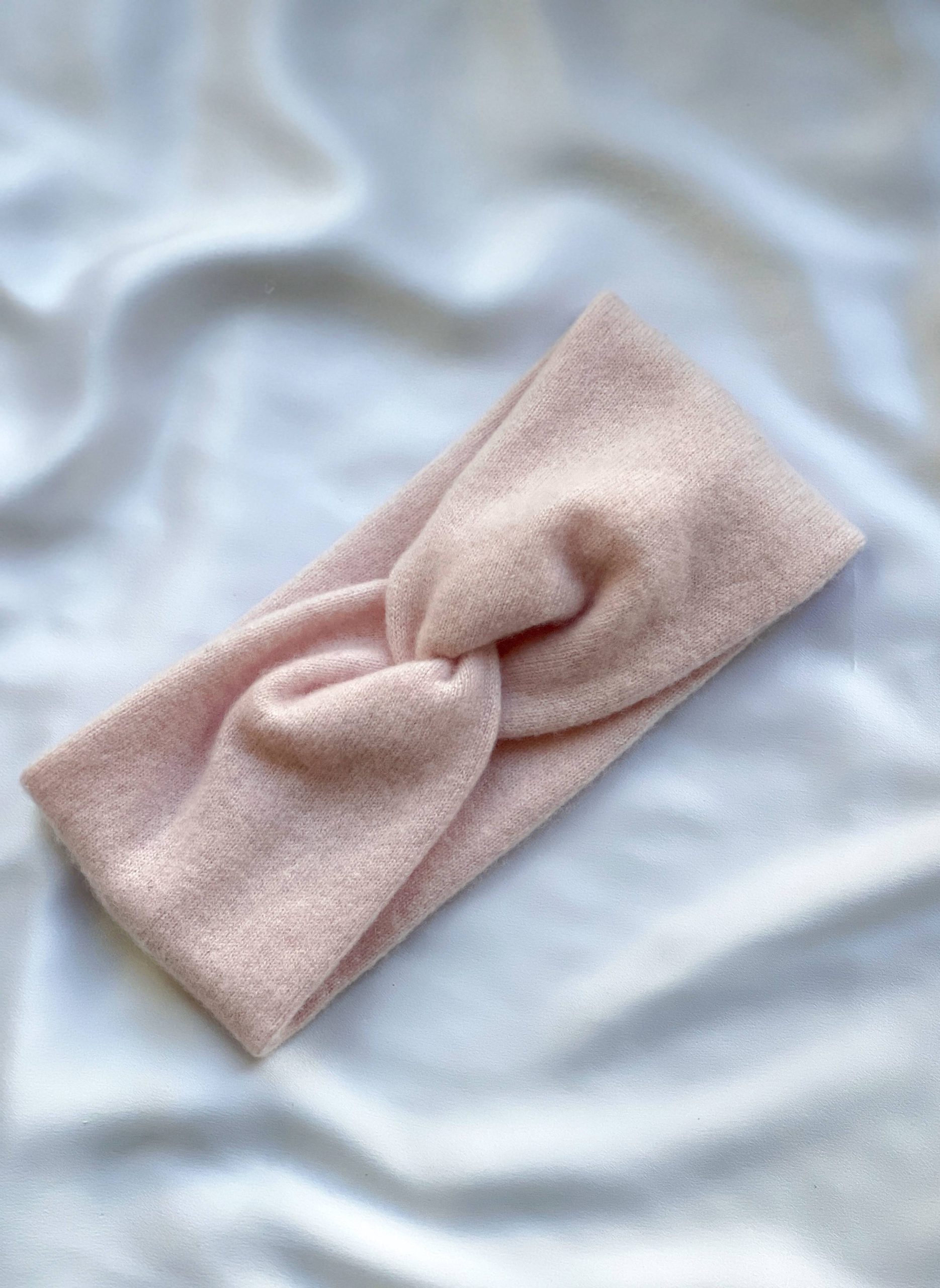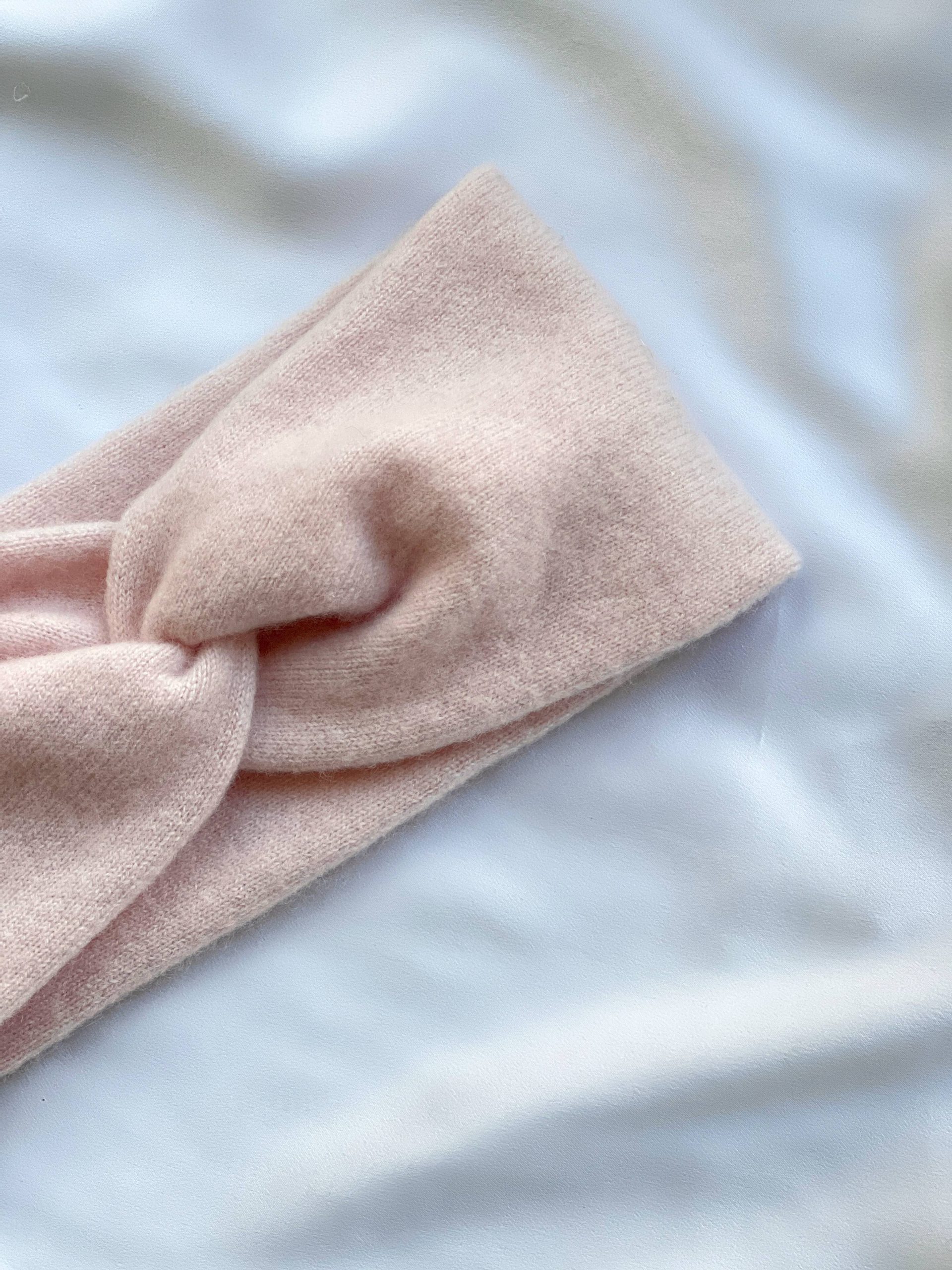 Ciepła opaska na głowę w kolorze pudrowego różu. W 100% szyta z kaszmiru z odzysku. Rozmiar uniwersalny. Skład: 100% kaszmir.