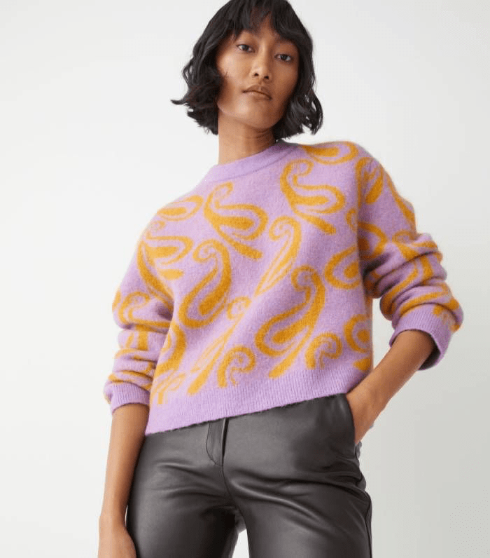 Grubszy sweter o pudełkowym fasonie, skandynawska marka &Other Stories. Model pochodzi z zeszłorocznej kolekcji zimowej, cena ze strony marki 513 zł (95£)