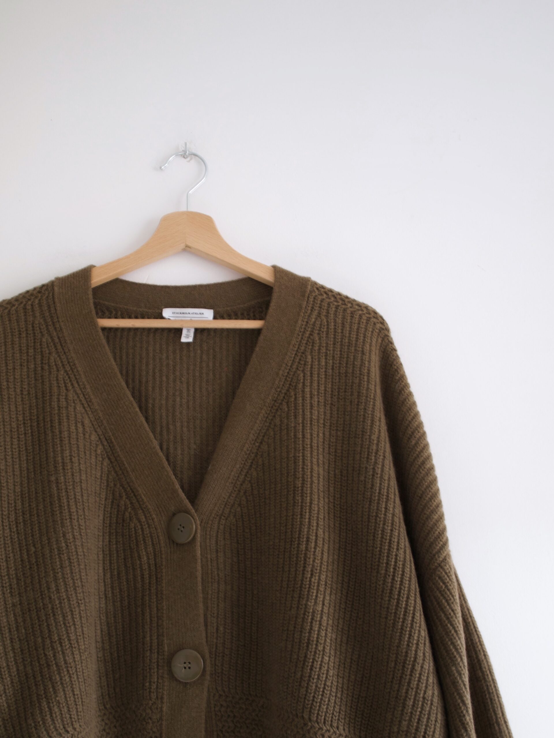 Minimalistyczny kaszmirowy sweter o pudełkowym kroju. Sweter bardzo miękki i przyjemny, ma dwie małe zacerowane dziurki, nie widoczne w noszeniu, poza tym brak mankamentów. Wymiary poniżej.