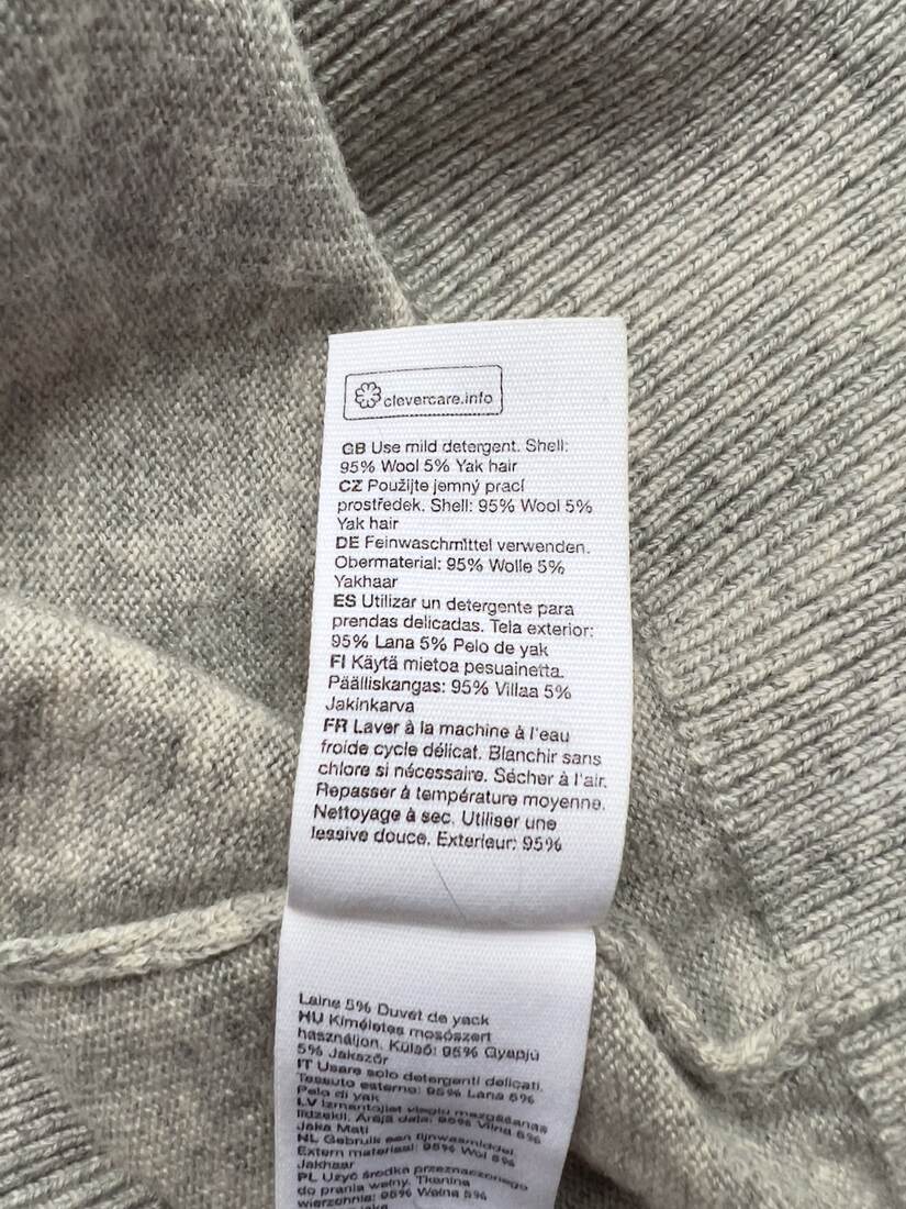 Skład: 95% wełna, 5% wełna jaka