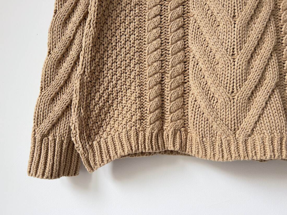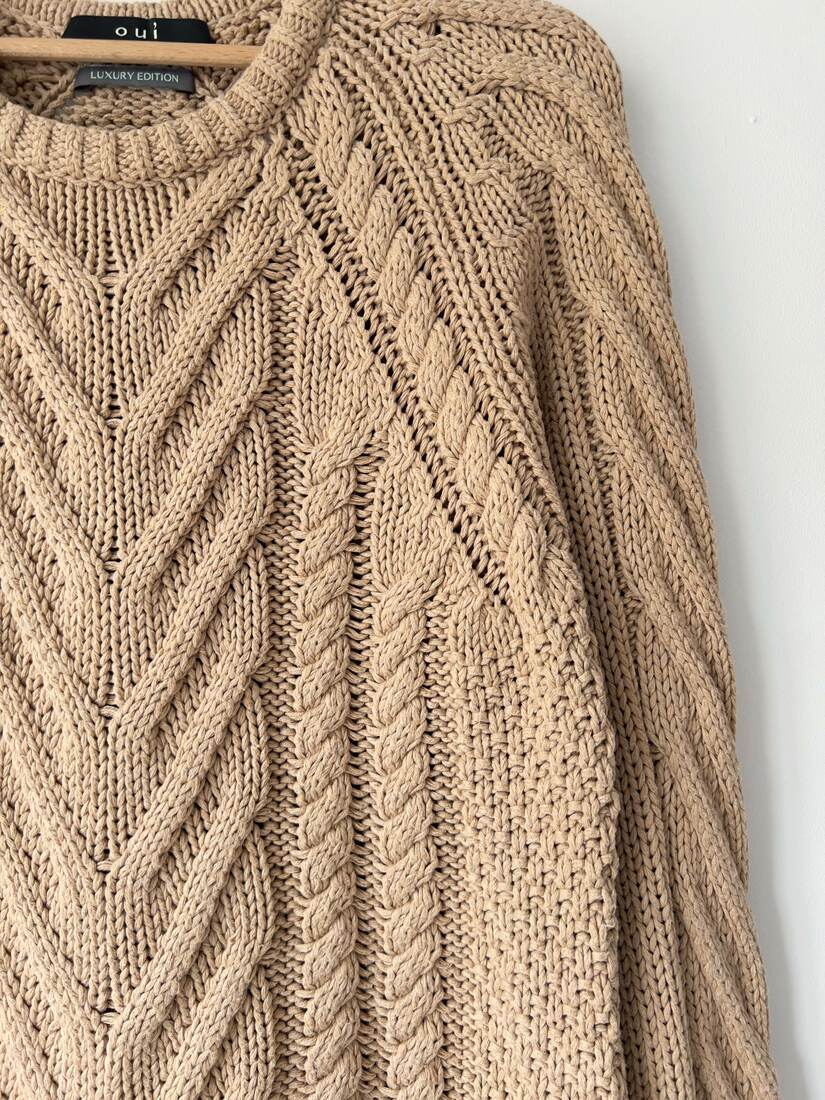 Sweter o grubym splocie, niemiecka marka Oui, linia Luxury Edition. W 100% wykonany z bawełny. Rozmiar z metki 40, ze względu na fason polecam jako one size. Bez wad.