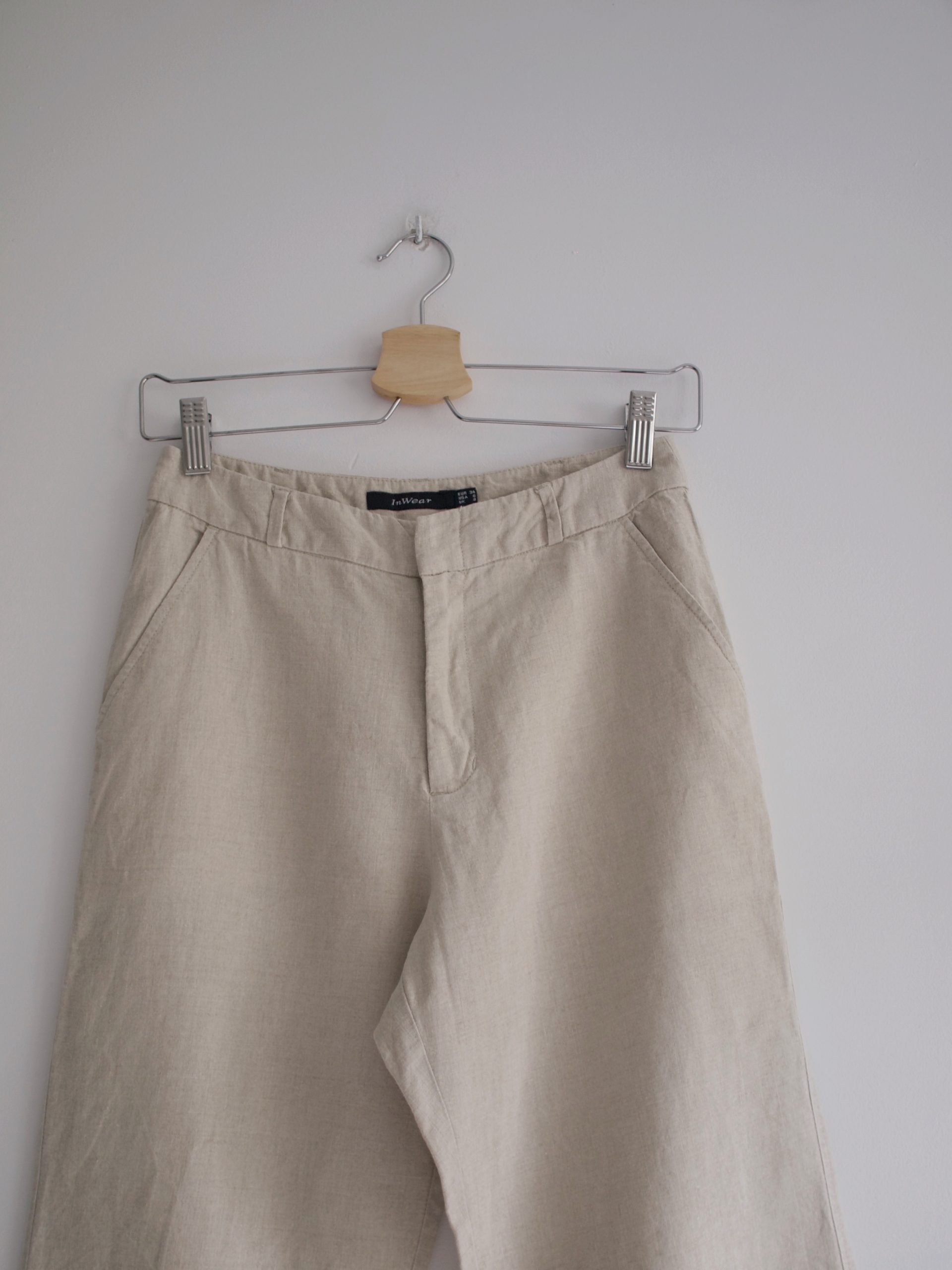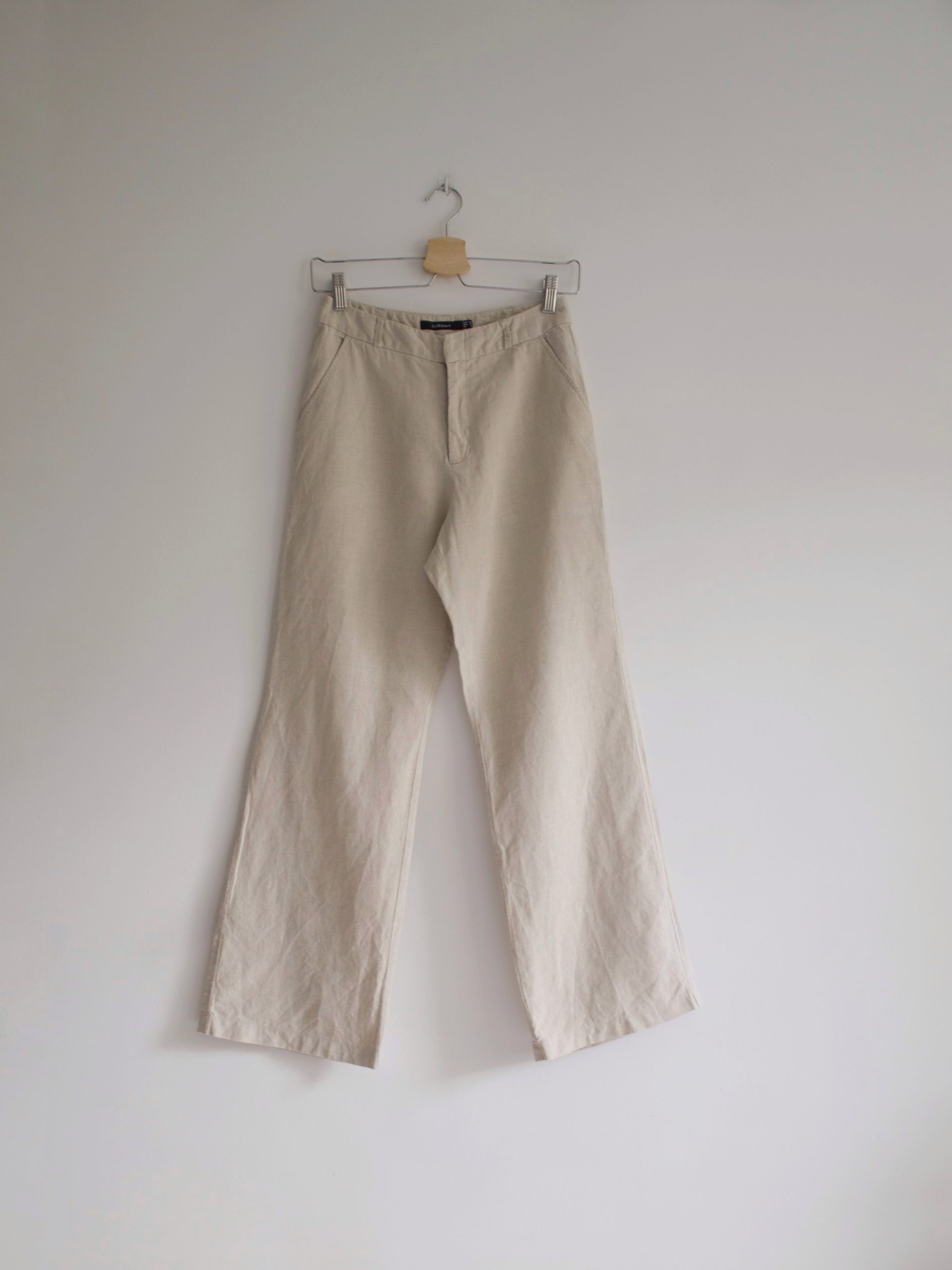 Wełniane spodnie vintage w kolorze camelowym. Zawężane w talii, dwie kieszeni, nogawki zawężane ku dołu, z tyłu małe elastyczne gumki. Rozmiar z metki 38, wymiary poniżej. Bez wad.