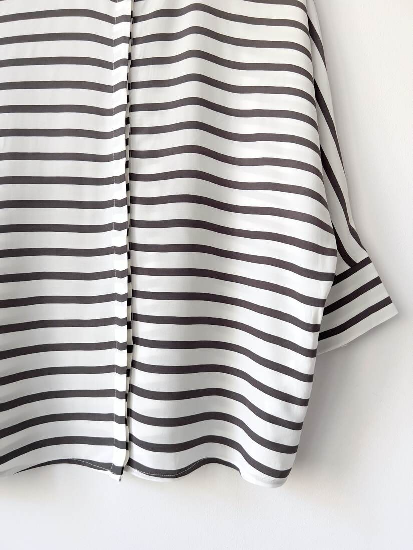 Minimalistyczny kaszmirowy sweter o pudełkowym kroju. Sweter bardzo miękki i przyjemny, ma dwie małe zacerowane dziurki, nie widoczne w noszeniu, poza tym brak mankamentów. Wymiary poniżej.